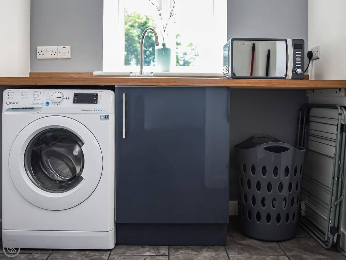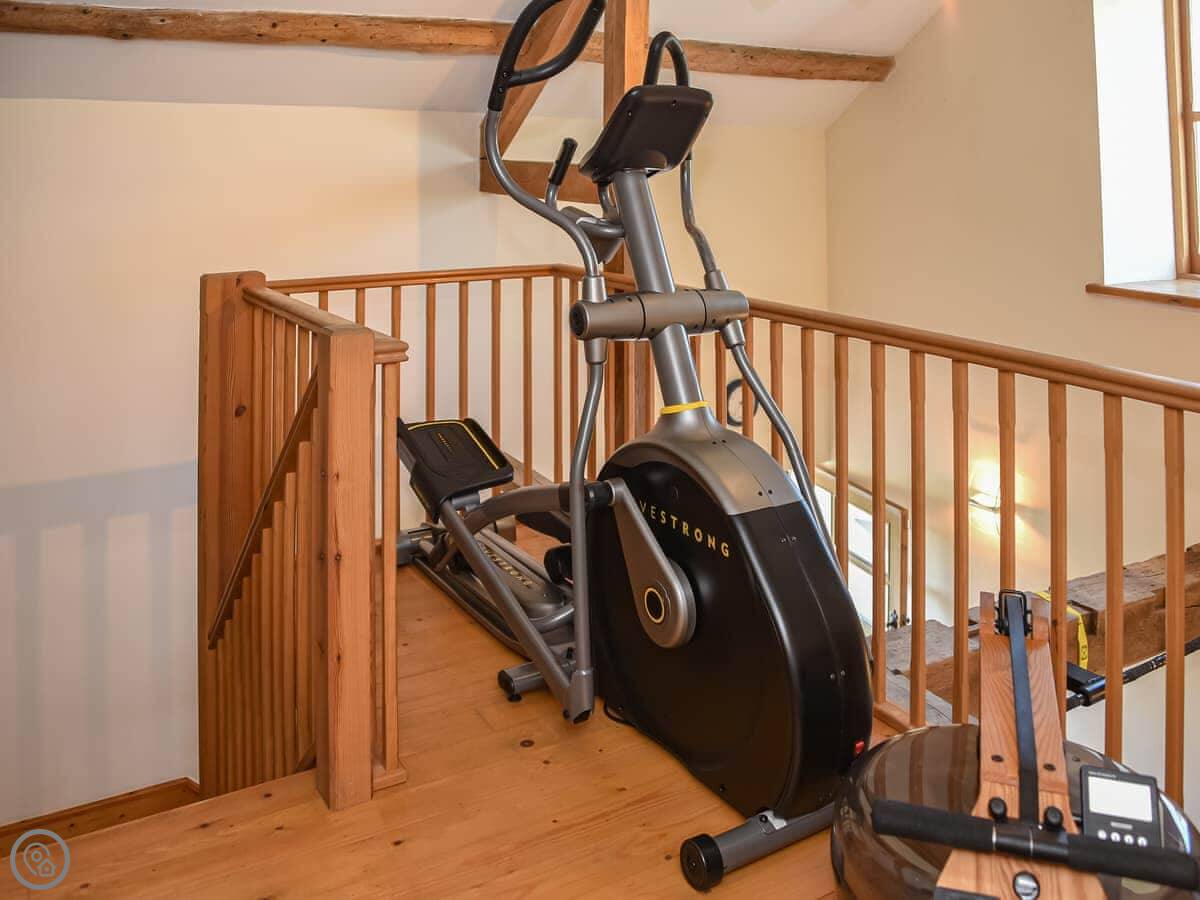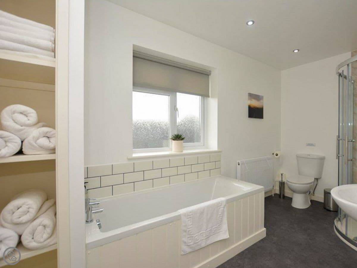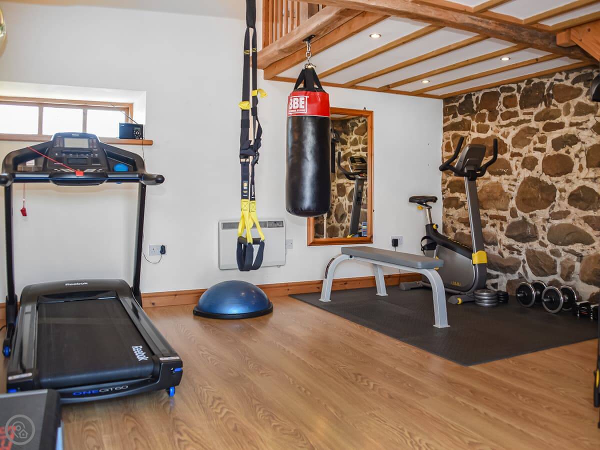 In terms of stuff here: it has WiFi, a washing machine, dishwasher, TV. Bedding and towels are included. There's a cot and highchair if needed. We allow one dog. There's parking on the drive, including an electric vehicle charger. We have a small private gym in a separate building that guests can use if they ask first.