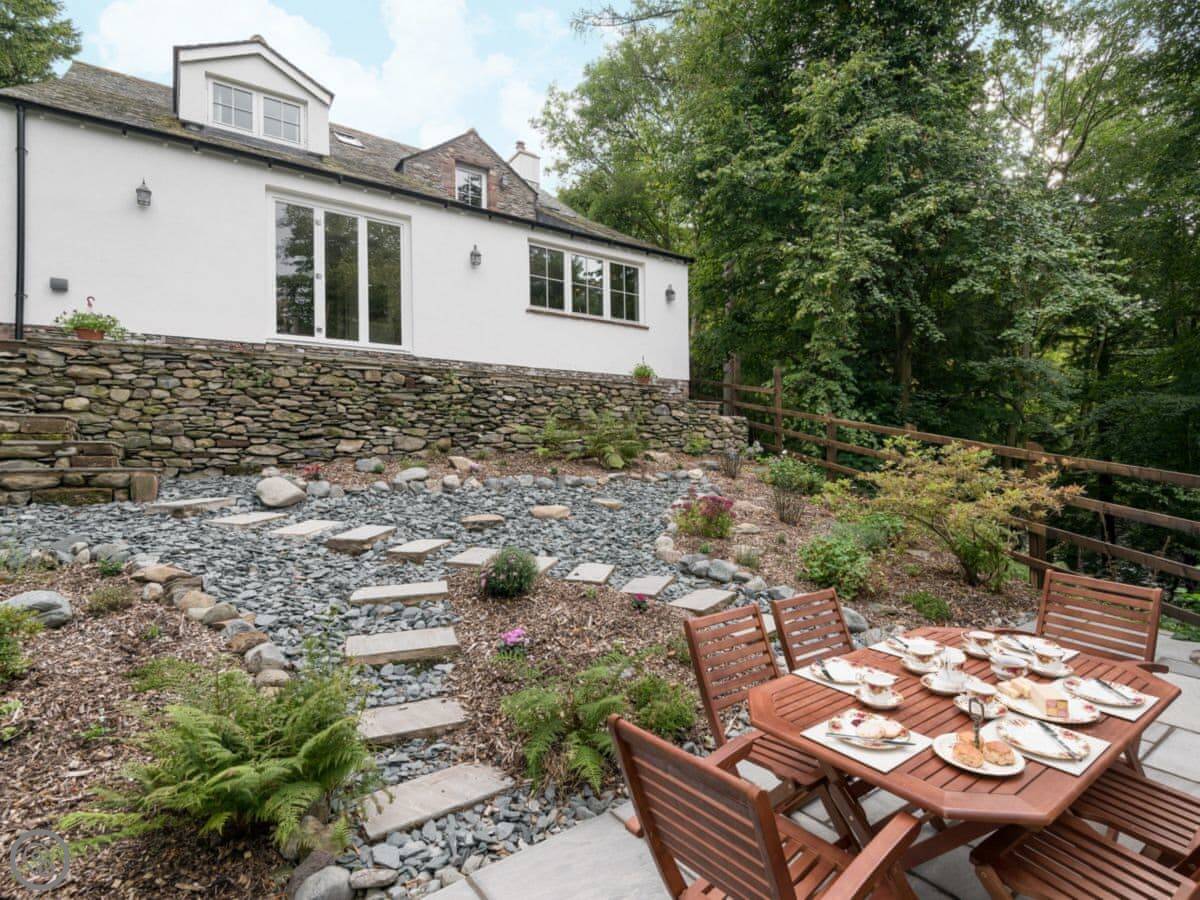 Waterfall Wood Cottage is on the hillside above Glenridding village. The waterfall is right there, you can hear it from the garden. It's stone-built, like most round here.