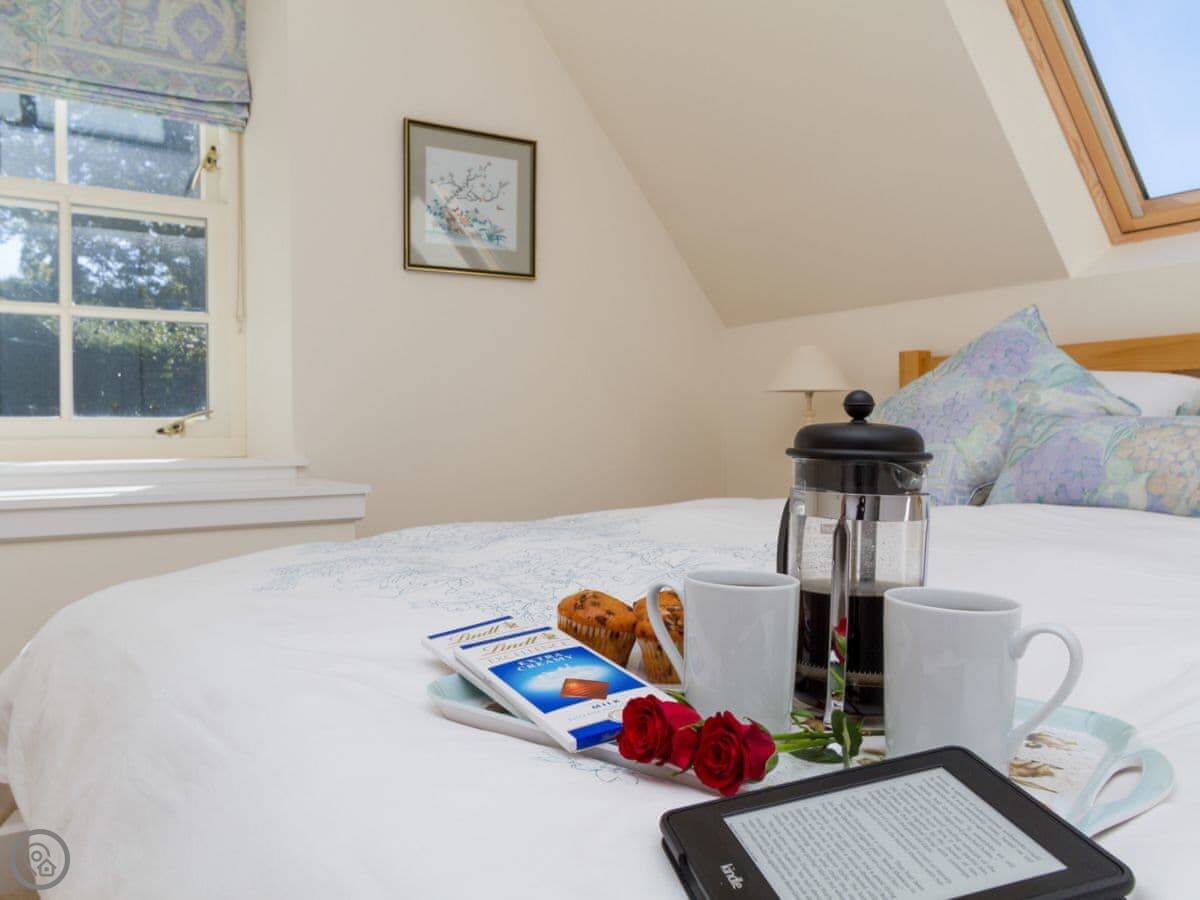 It sleeps four in two bedrooms. Both bedrooms have their own bathroom. It's got a 4 Star rating. The main house and the other cottage are nearby, but you've got your own separate space and garden.