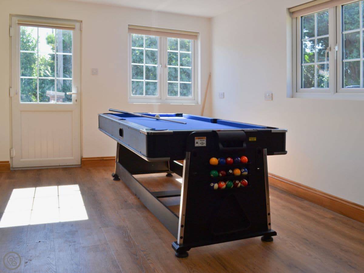 An indoor heated swimming pool will provide the opportunity for year round swimming, with shower facilities as well. Those wishing to stay in shape can also enjoy a well-equipped gym with a sauna and hot tub to relax in, and ease their muscles after a good work out. There is also a games room on site and a large cinema area with a 170’’ screen in the separate leisure barn that is in the grounds, just 50ft across the garden. There is even comfortable seating and a kitchenette with a fridge, so you can enjoy ice cold refreshments while you relax and watch a film. Outdoor games and indoor board games are also provided. Solar panels provide electricity for the pool building, external light and barn.
