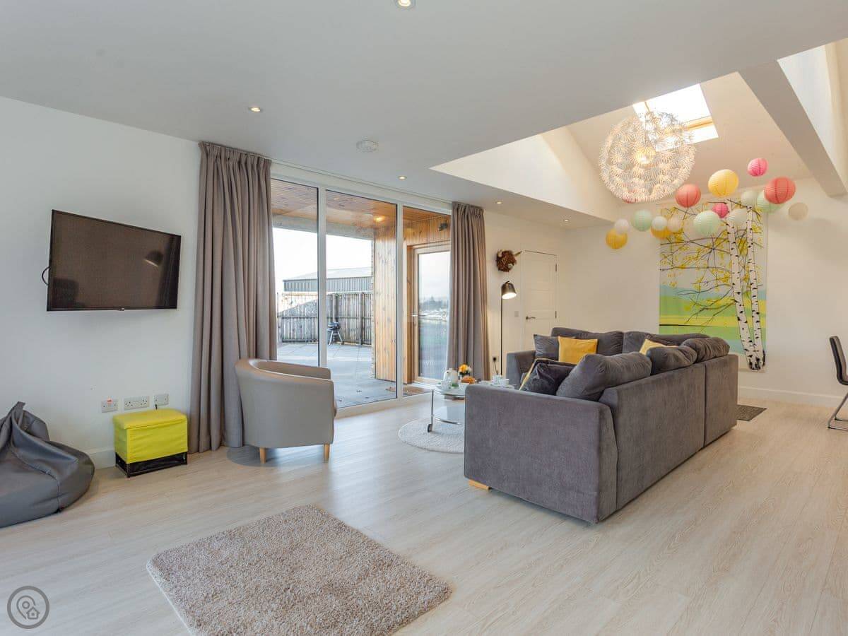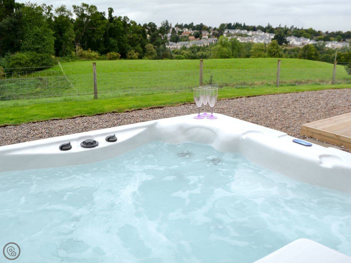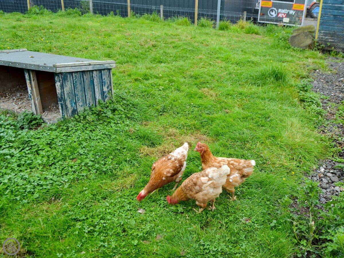 The barn is right next to our farmhouse. We’ve got Highland cattle and sheep in the fields. Sometimes you hear the trains go by on the old railway line, not too often. There’s a private hot tub in the enclosed garden, and a BBQ.