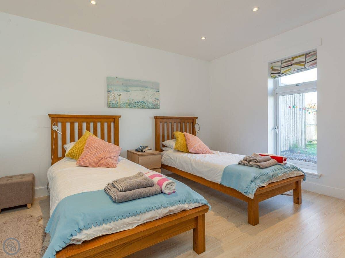 It sleeps four. Two bedrooms, one bathroom. It’s got a 4 Star rating, which means it’s comfortable and well-equipped. It’s all on one level, which is good if stairs are a problem.