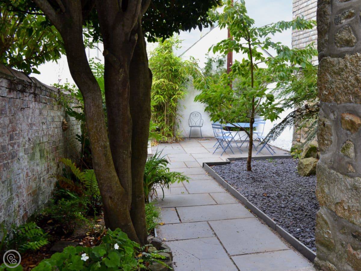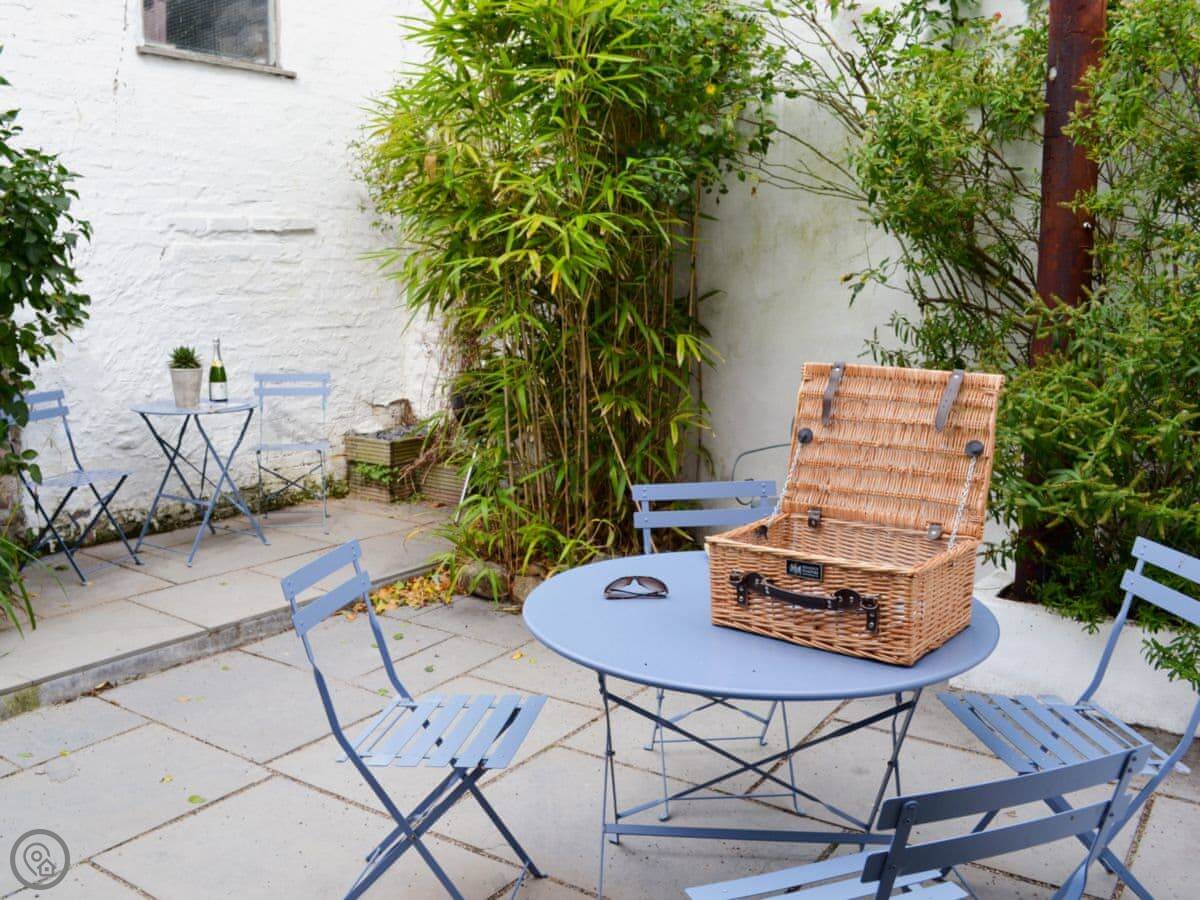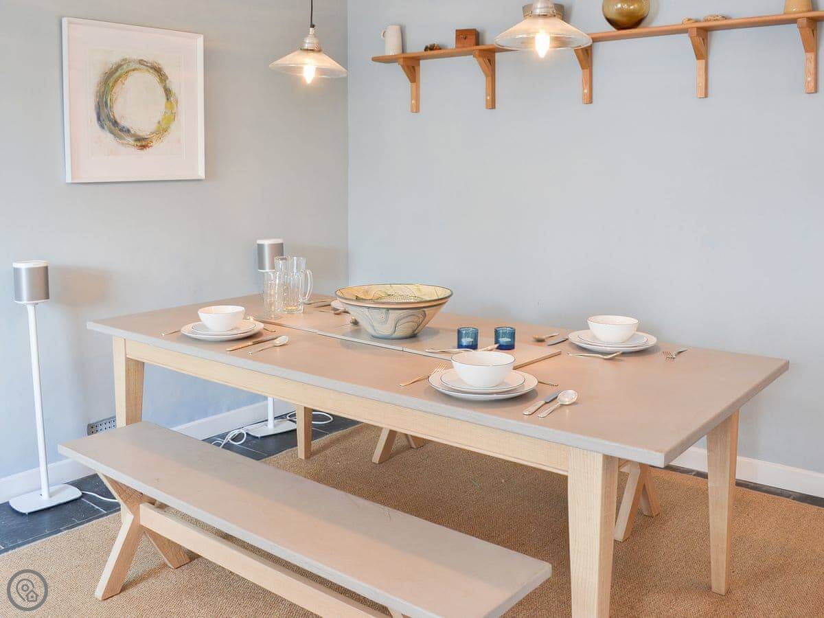 It's got a small enclosed patio garden out back. There's underfloor heating downstairs and an open fire in the living room. We provide bedding and towels. There's a washing machine, dishwasher, and a cot and highchair if needed. One well-behaved dog is welcome.