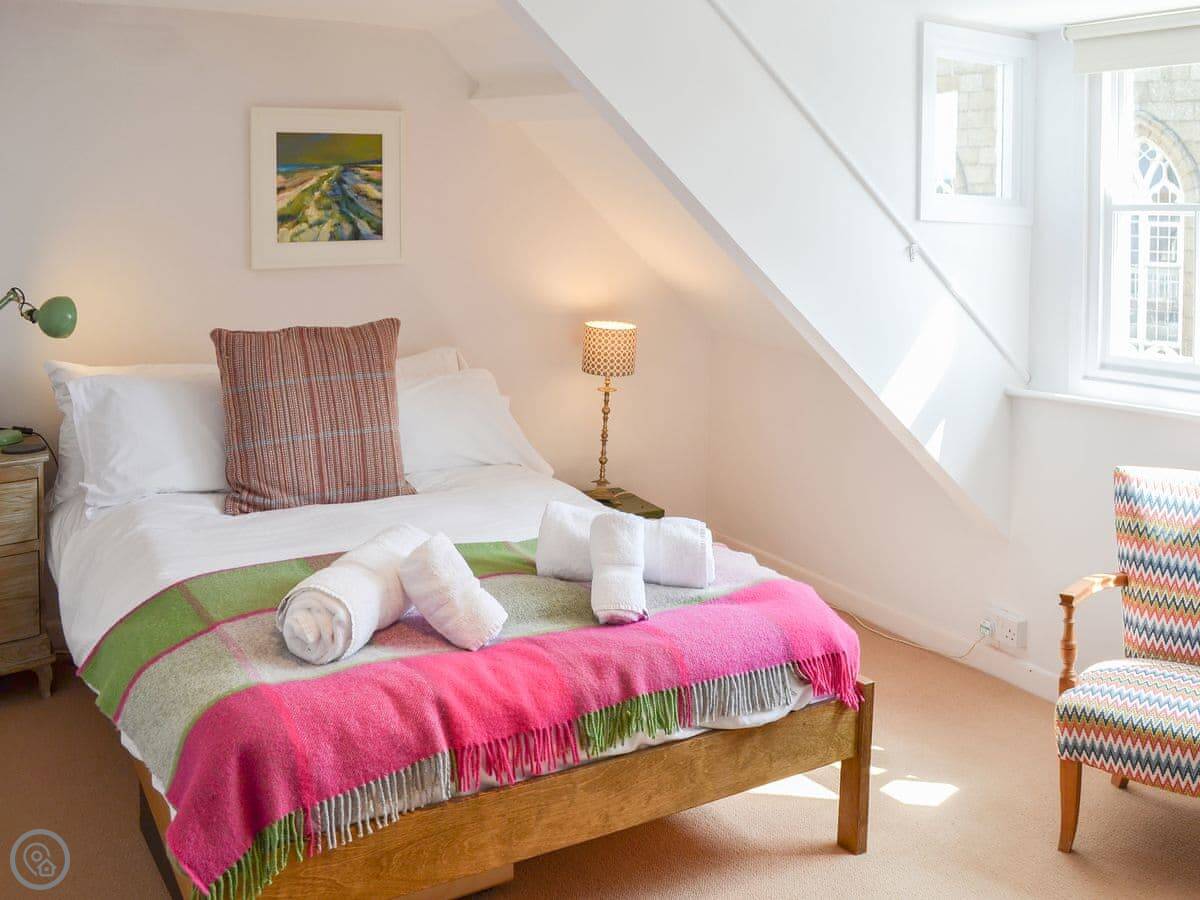 It sleeps six. Three bedrooms, one bathroom. It's got a 4 Star rating so it's comfortable and well looked after. The stairs are a bit steep and narrow, just so you know. It's that sort of house.