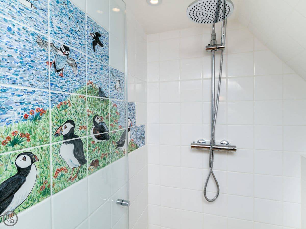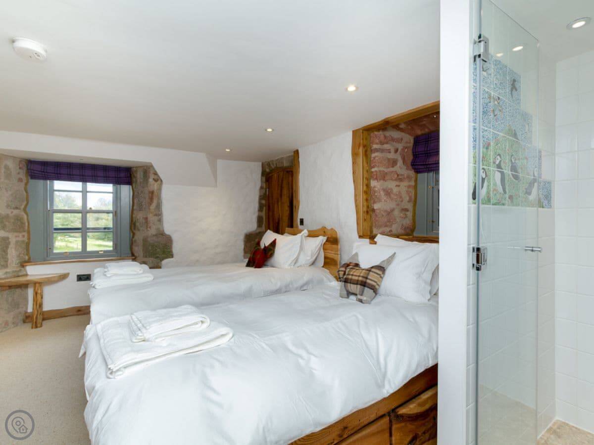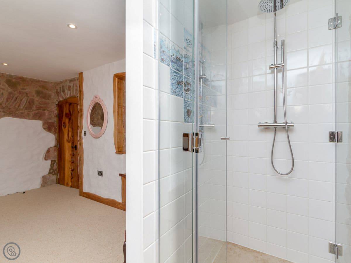 From the quirky doors and interior, where no straight lines will be found, to the sauna in the tower, and the painted ceiling in the keep, to the stunning views over the sea from the glass domed lookout, and not forgetting the sheep grazing on the wild flower roof. Old Knock Castle will be sure to exceed every expectation.