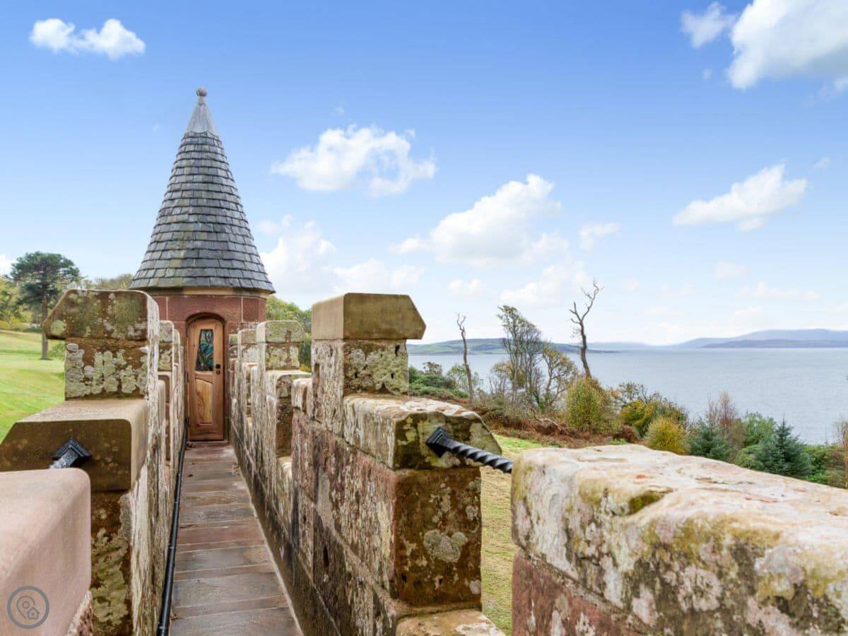 The castle is situated on the Ayrshire coast, in a private setting, 200 yards from the owner’s home, with only a short walk from the shore and close to the bustling town of Largs with its shops, restaurants and promenade. This holiday property is ideally located to explore the islands of Cumbrae, Arran and the Isle of Bute. Ferries run to Dunoon and the Cowal Peninsula, giving access to Loch Lomond and The Trossachs National Park.