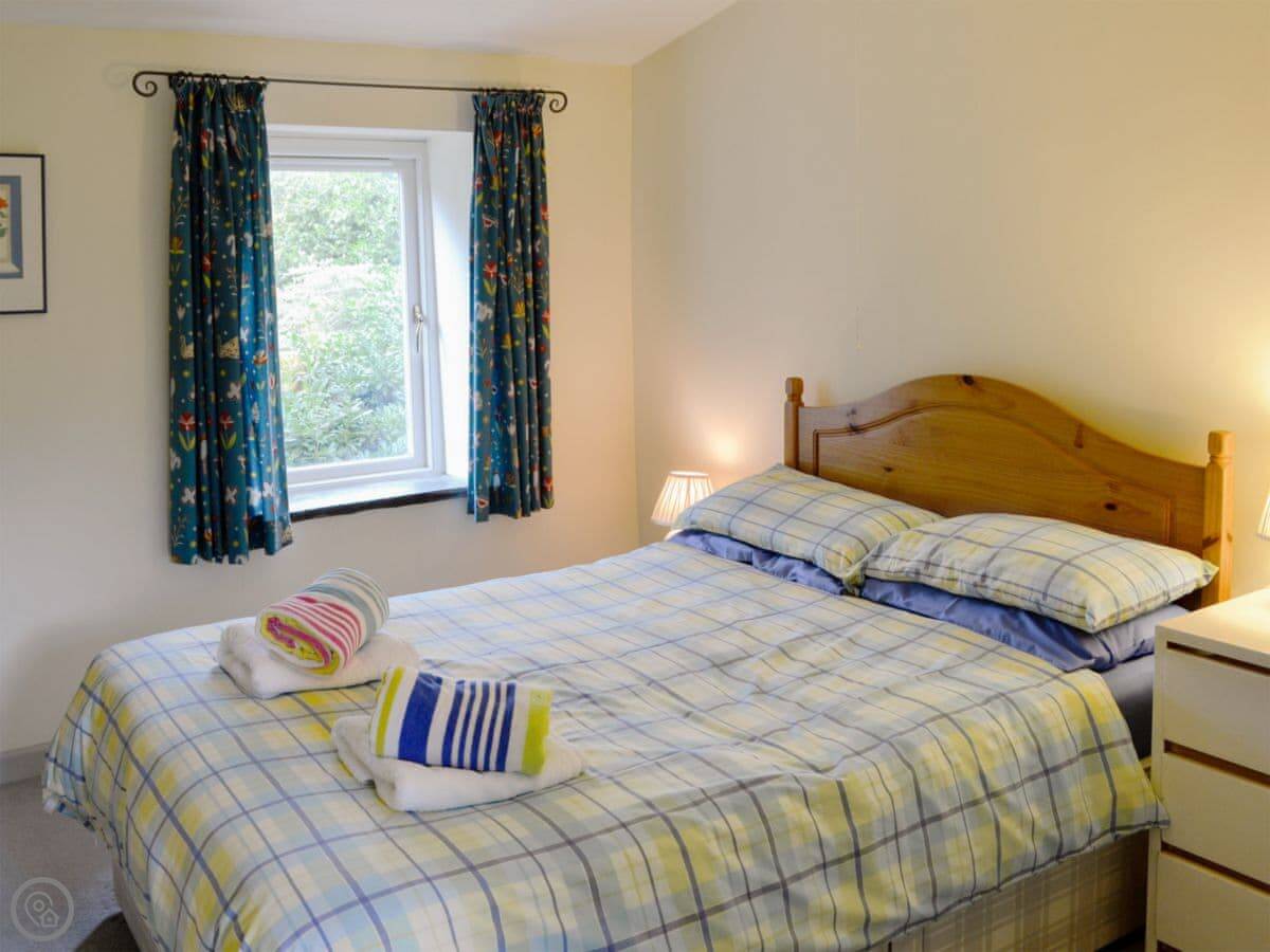 The cottage sleeps four. Two bedrooms and one bathroom. It's got a 3 Star rating, so it's comfortable and clean. It's not massive, but it's got everything you need. You can bring one dog. There's parking right outside.