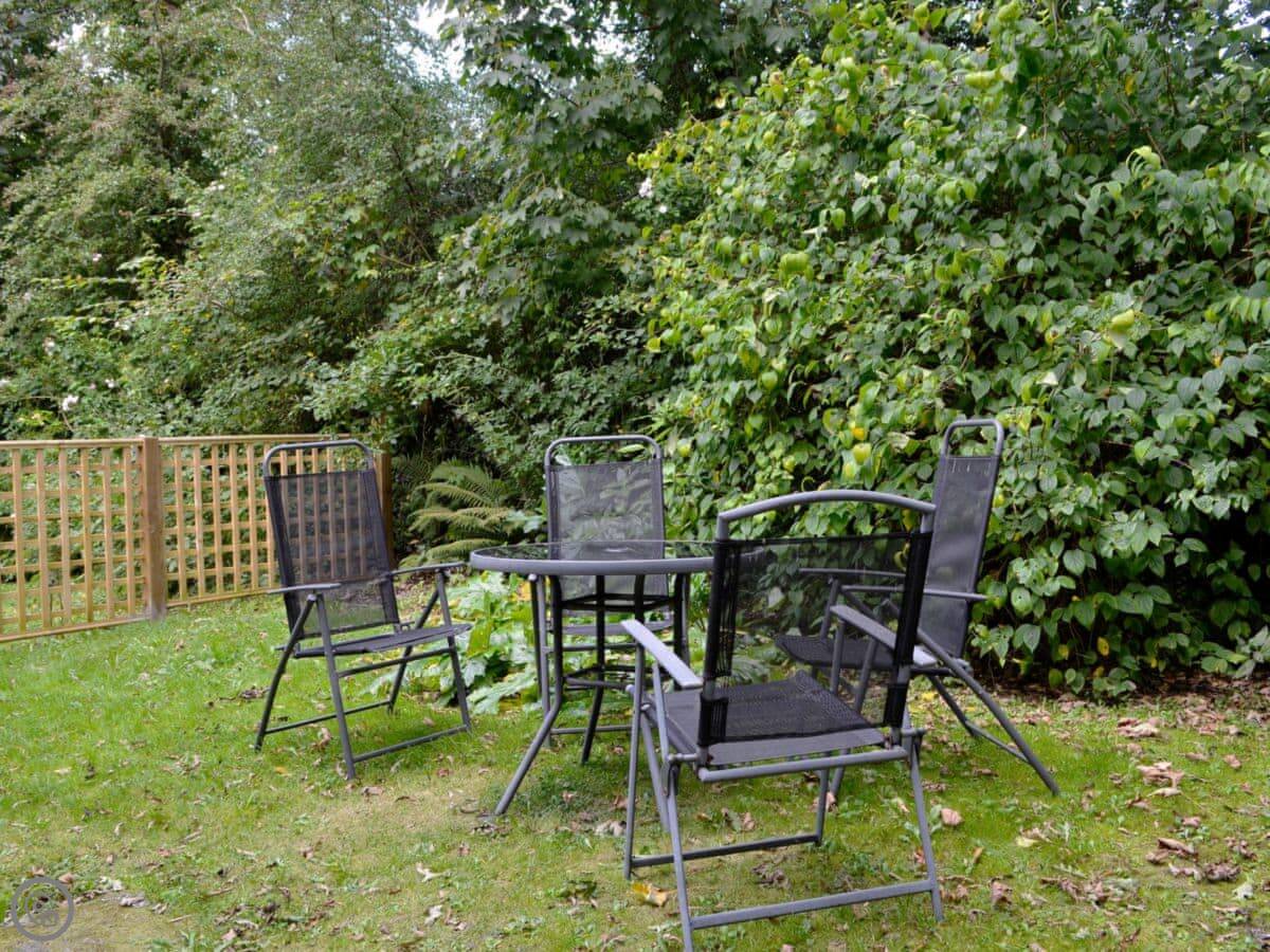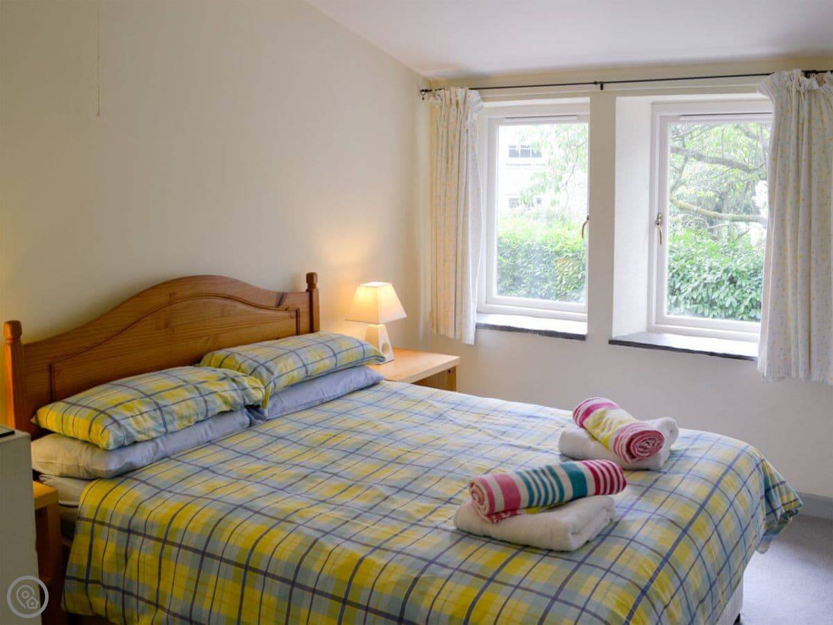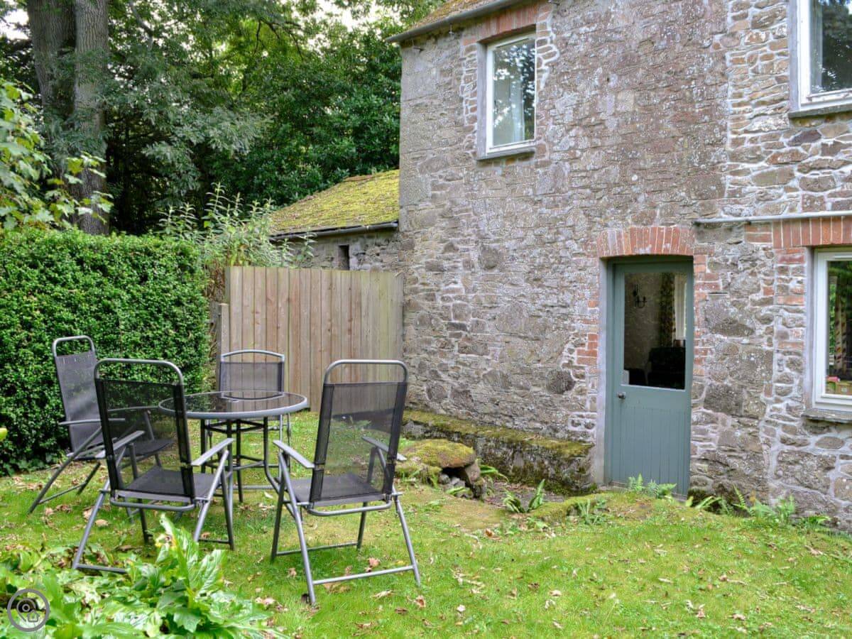 It sleeps four, in two bedrooms. One bathroom. It's a 3 Star place, so it's clean and comfortable without any frills. You can bring one dog. There's a patio and garden area that's just for this cottage.