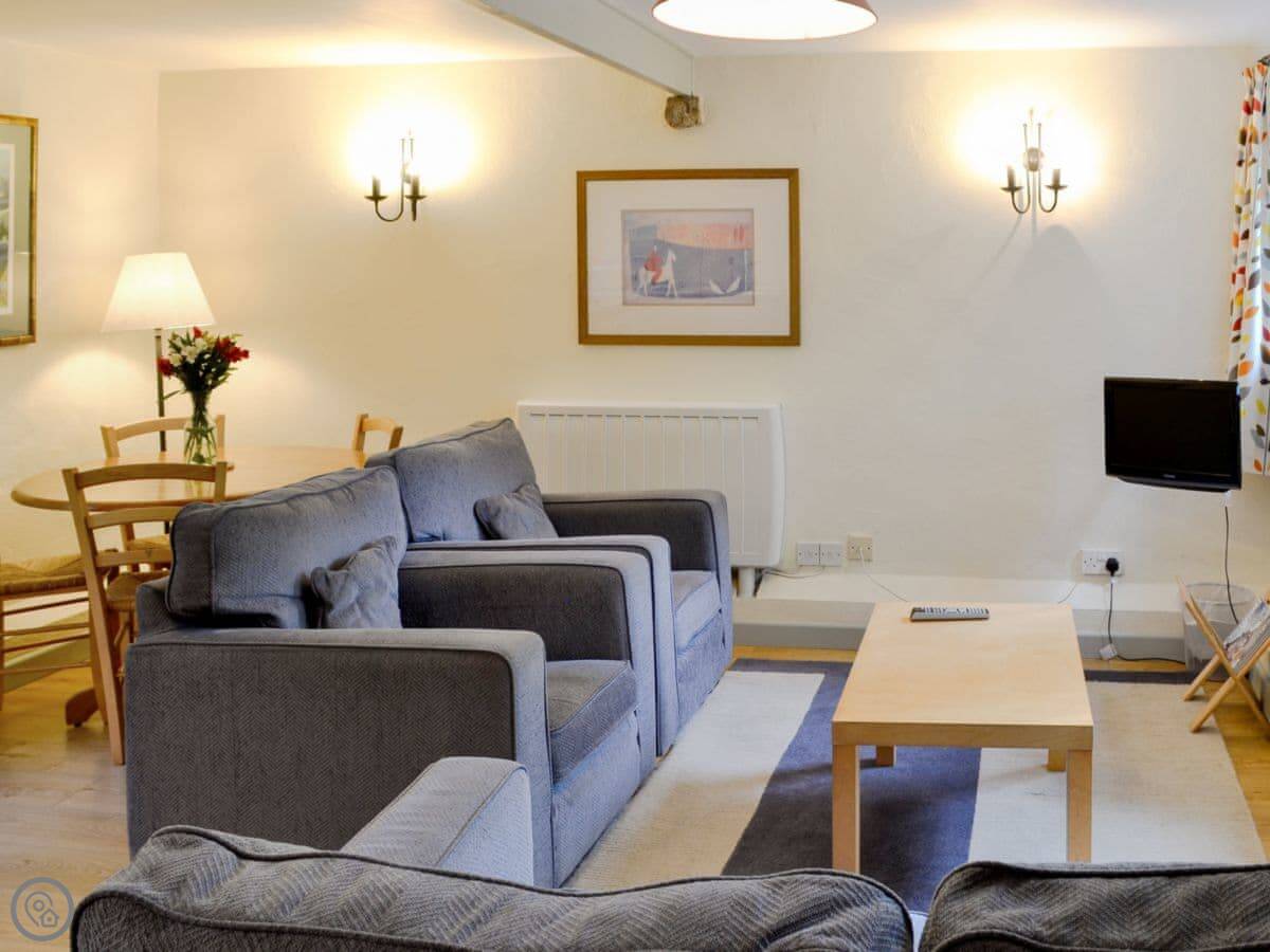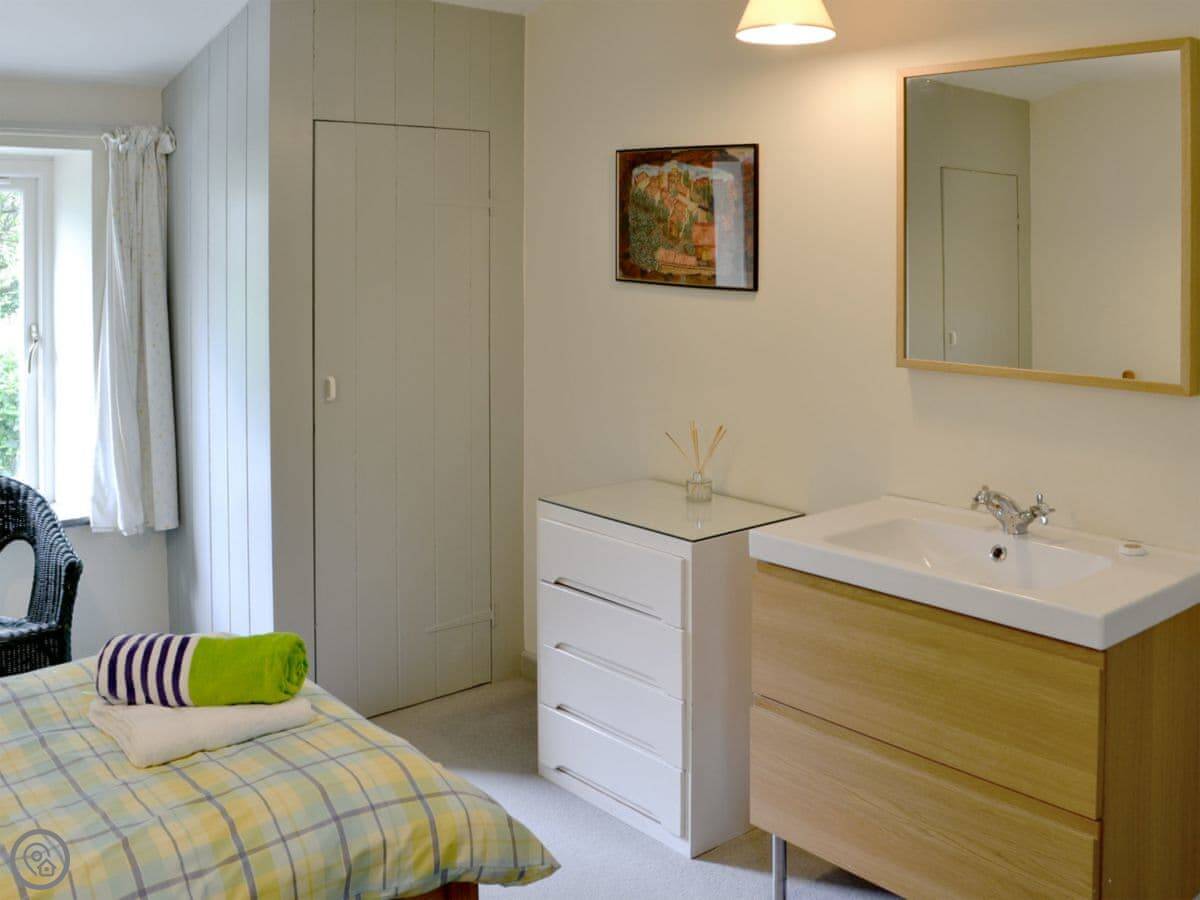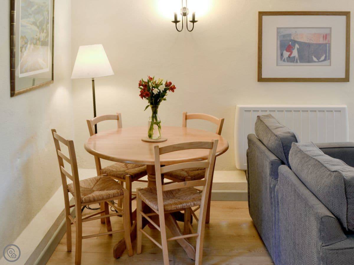 It sleeps four, in two bedrooms. One bathroom. It's a 3 Star place, so it's clean and comfortable without any frills. You can bring one dog. There's a patio and garden area that's just for this cottage.