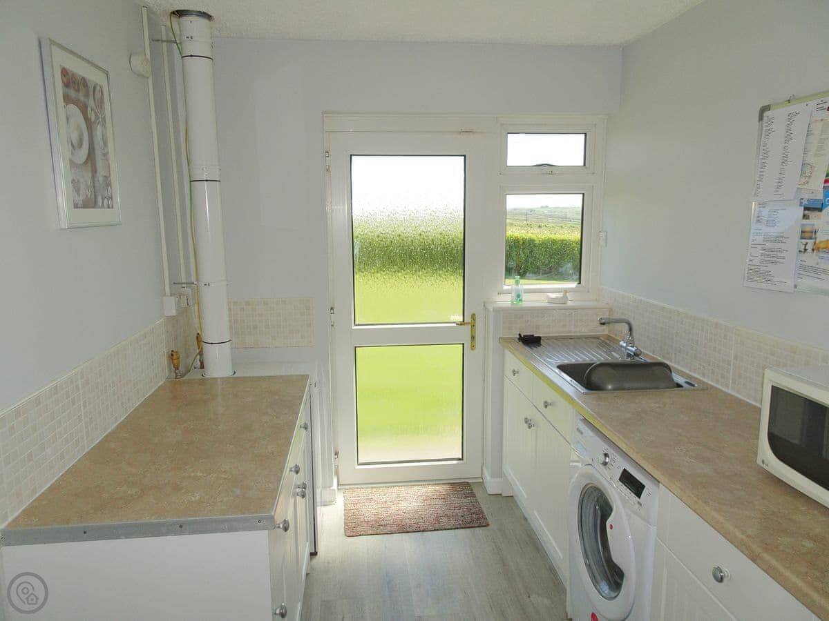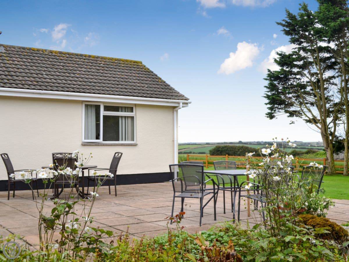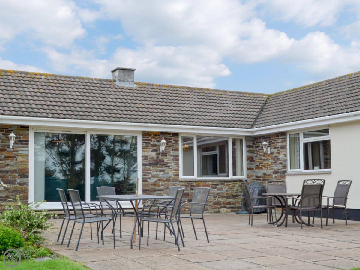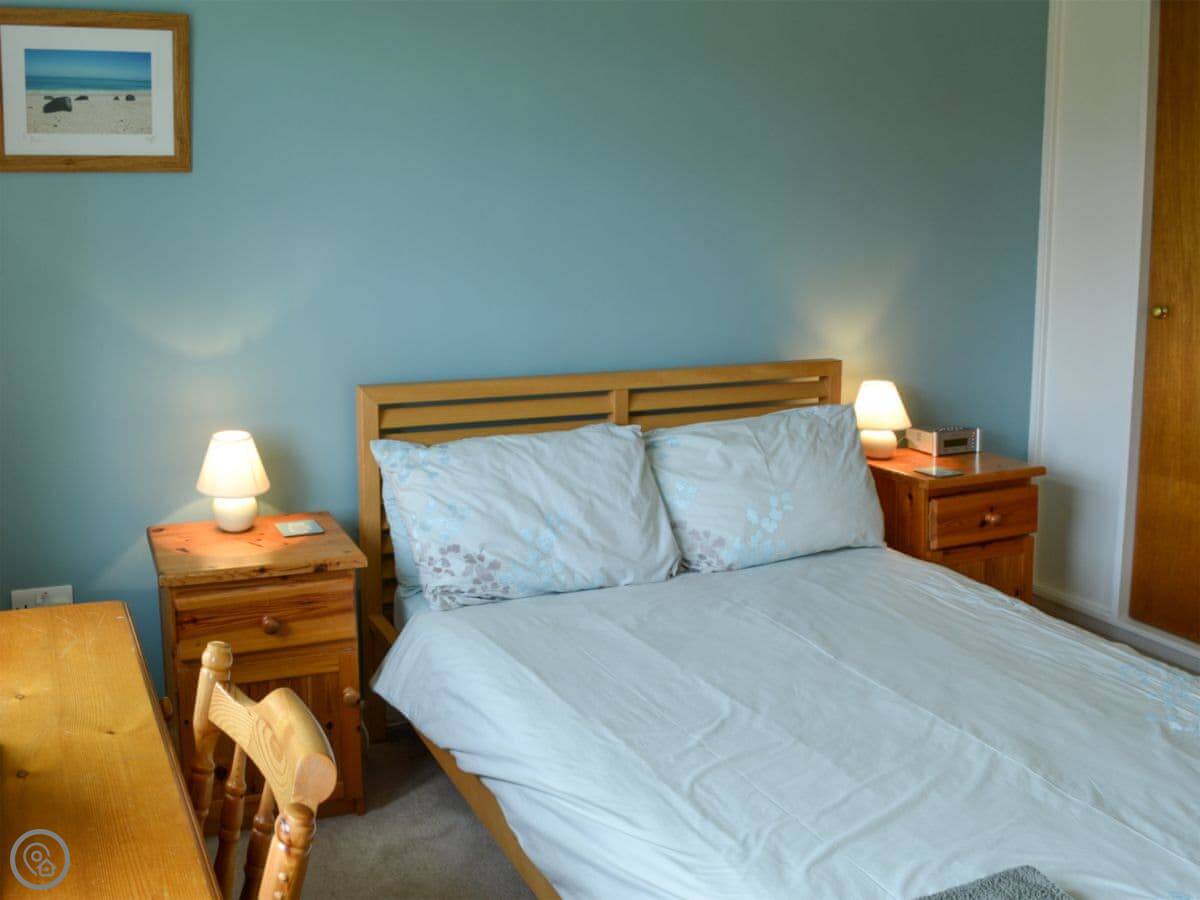 Tregoona is in Crantock, a village on the north coast. It's a single-storey bungalow, detached, with its own garden. The garden is lawned and looks out over fields.