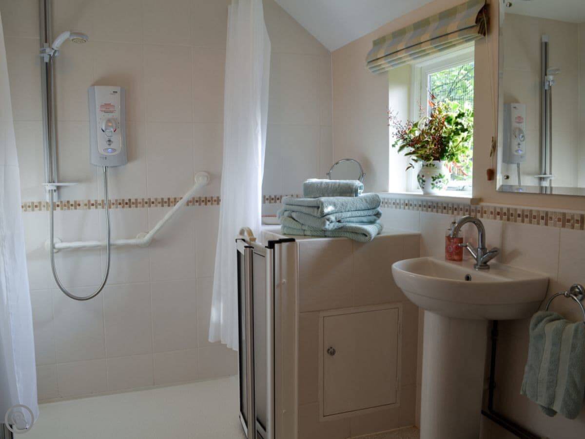 It's for two people. One bedroom, one bathroom. It's got a 4 Star rating, so it's comfortable and well-equipped. The decking is a good spot to sit when the sun's out.