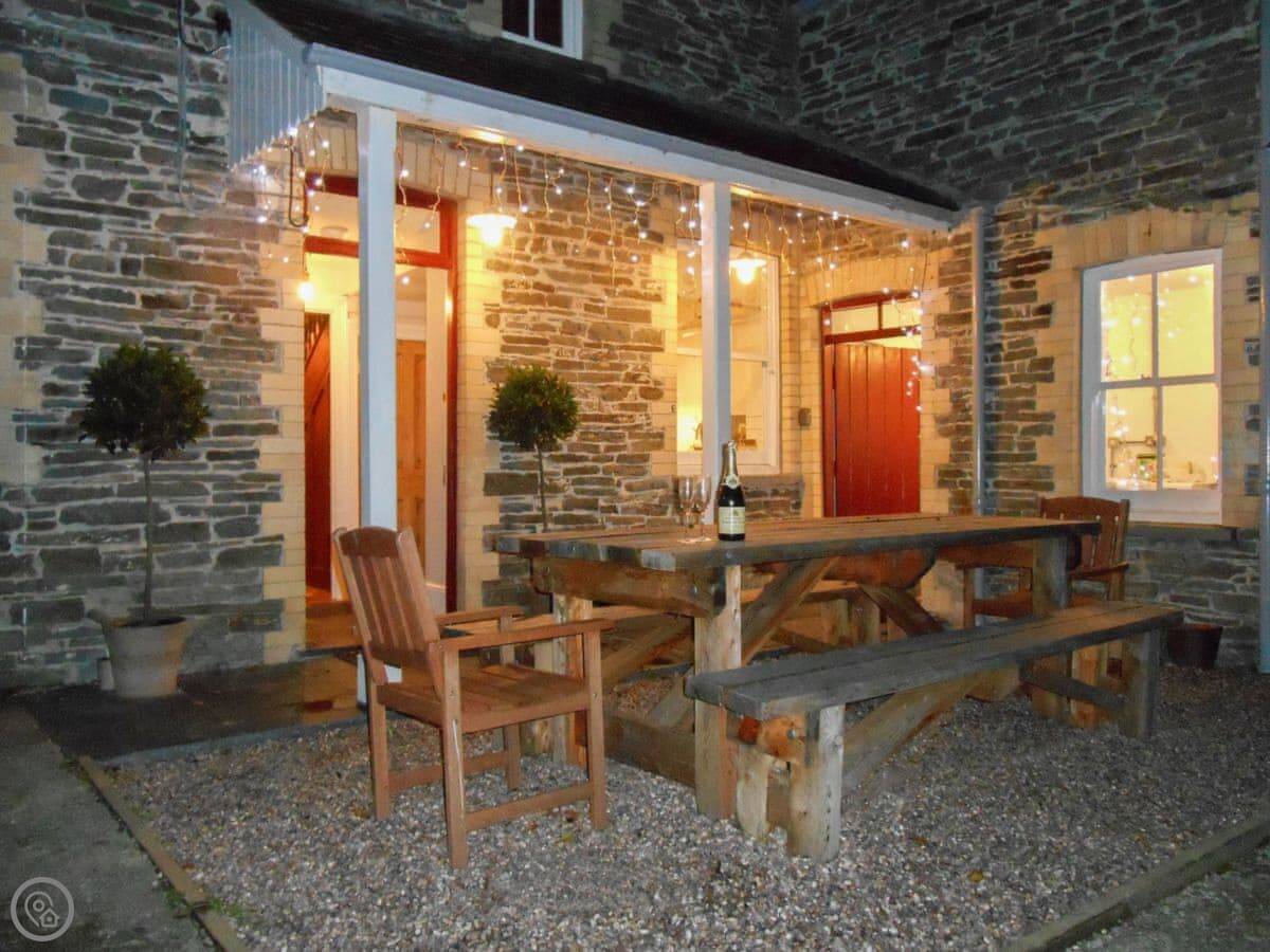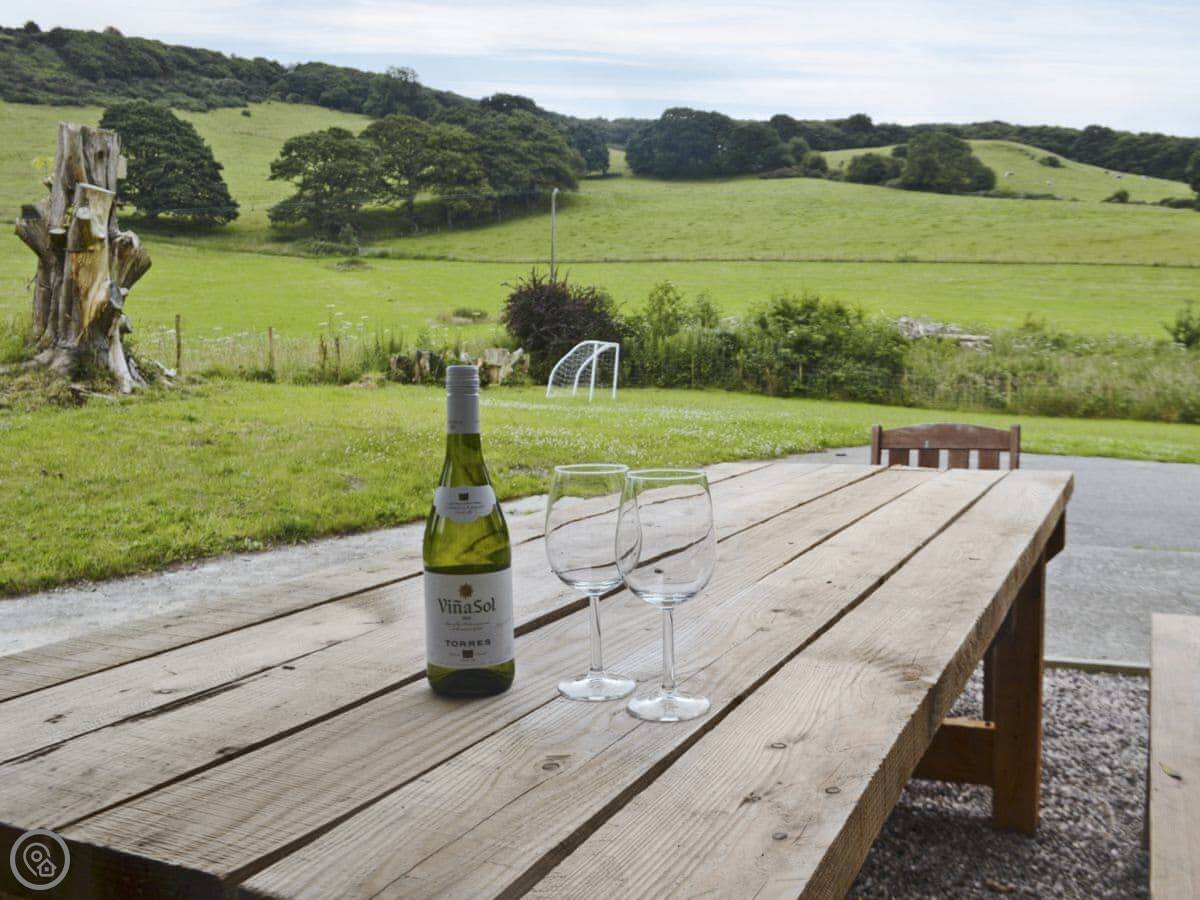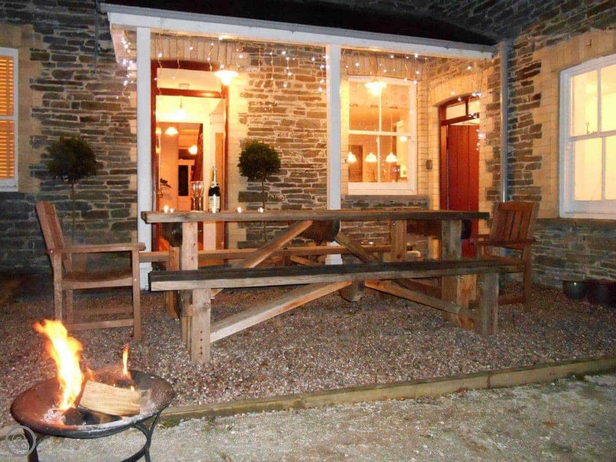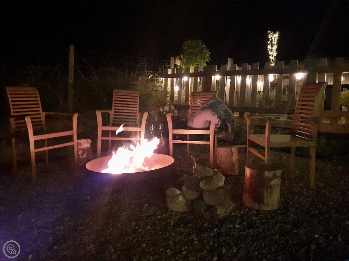 The garden is large and enclosed. There's a fire pit and a barbecue. You can park on site.