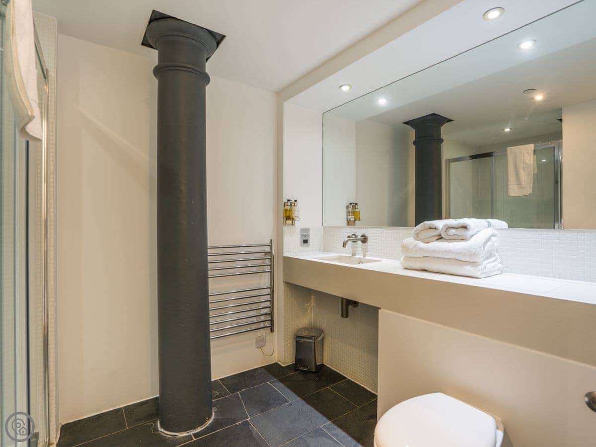 6 Mills Bakery is an apartment in the Royal William Yard in Plymouth. It's a historic building, a proper old naval yard, but it's been done up inside. You get the beams and the arches but it's all modern to live in.