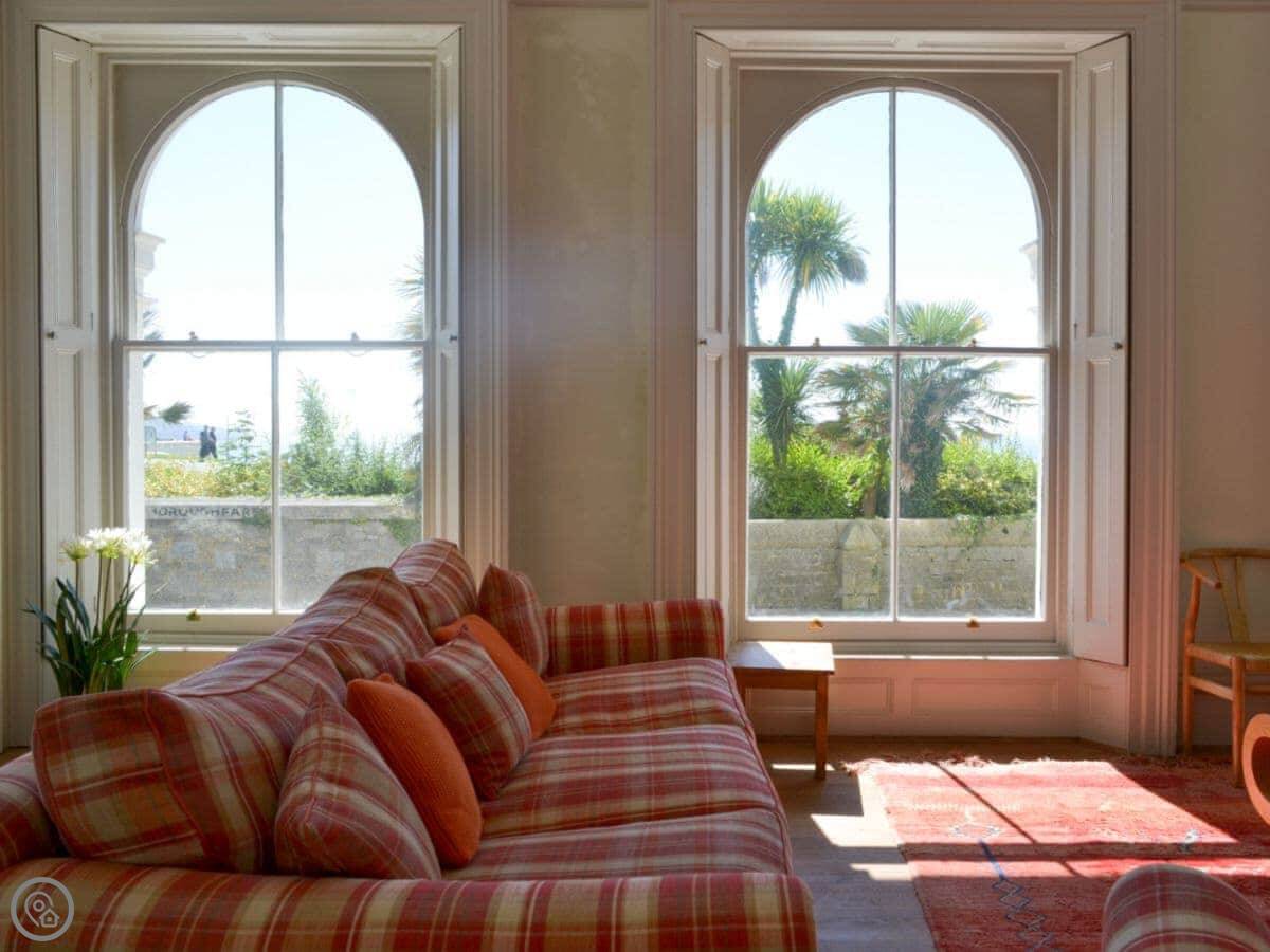 The main thing is the view. You look straight out from the Hoe, across the Sound to Drakes Island. It's a dual aspect, so you get light all day. The rooms are big. The cornicing and ceilings are original, so it feels grand, but it's a flat you can live in.