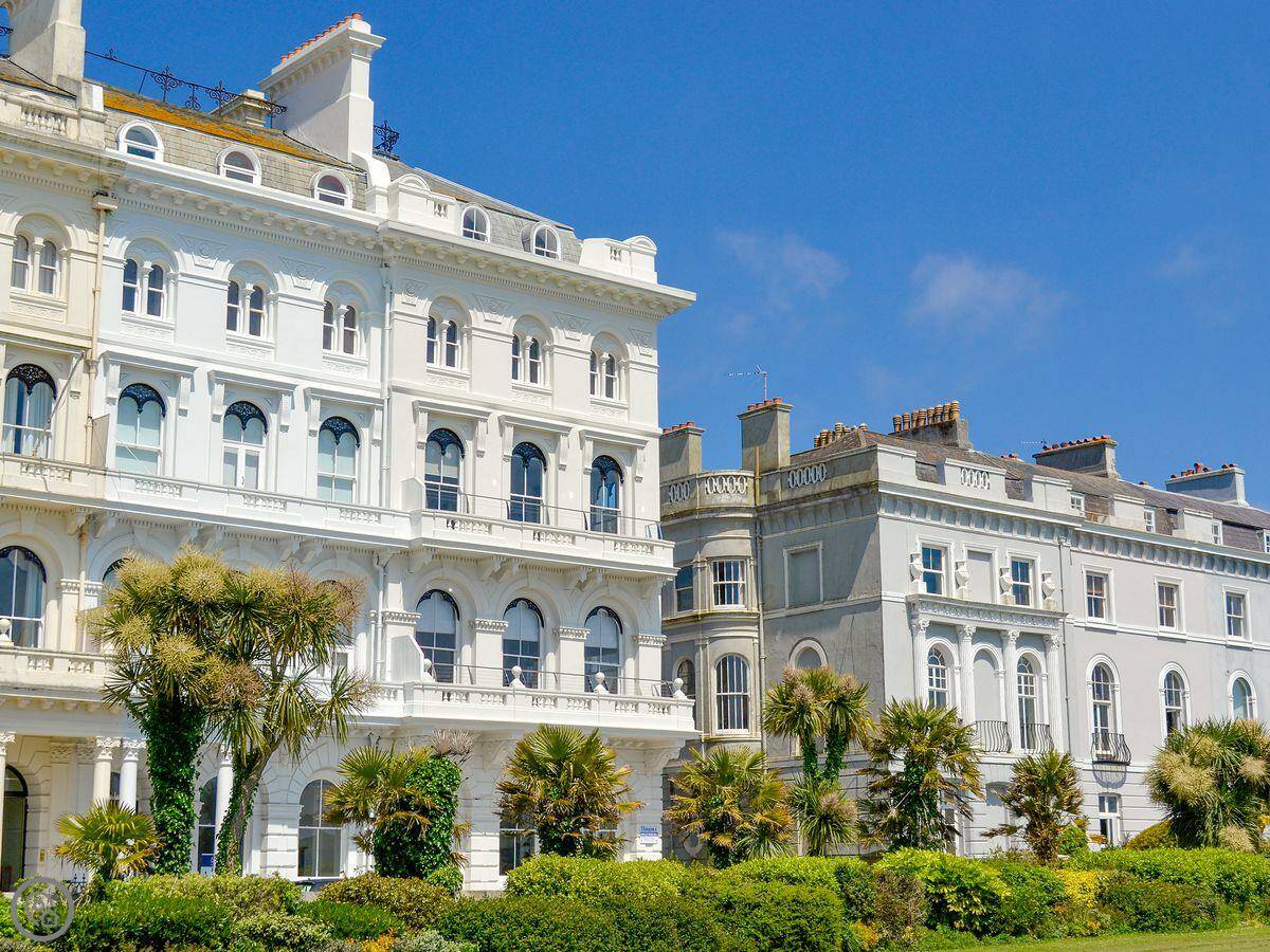 This is the Mayflower Apartment. It's on Elliot Terrace, right on Plymouth Hoe. It's part of a big, grand old building. Ours is apartment number five.