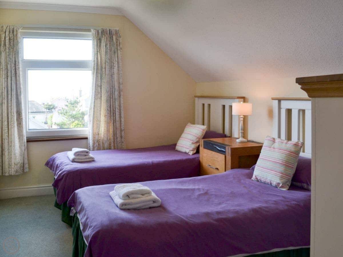 It sleeps four. Two bedrooms, one double and one twin. One bathroom with a shower over the bath. It's got a 3 Star rating, everything works and it's clean.