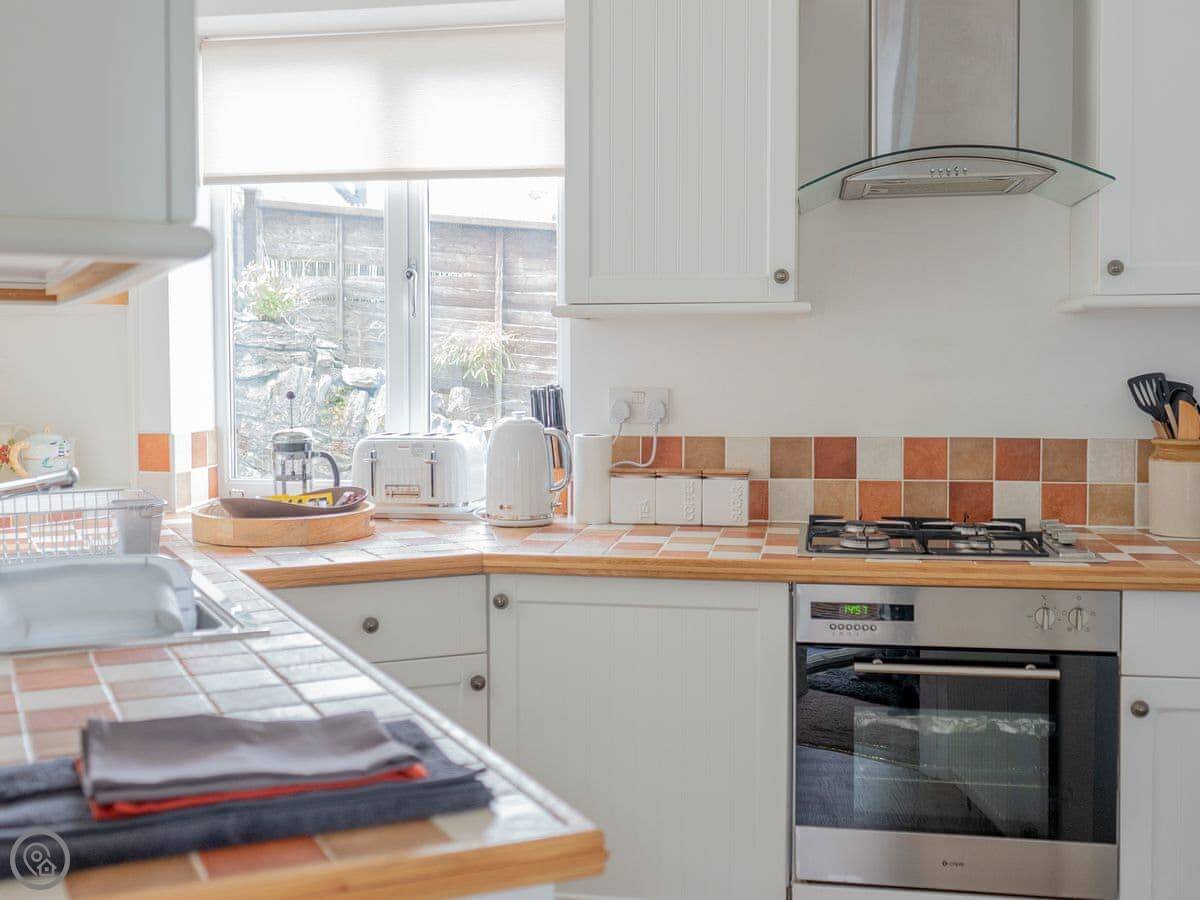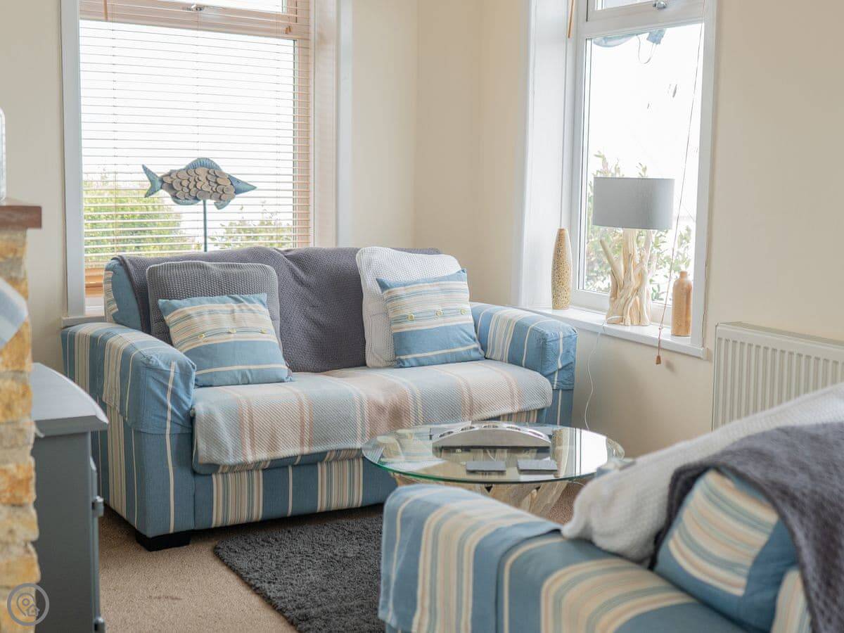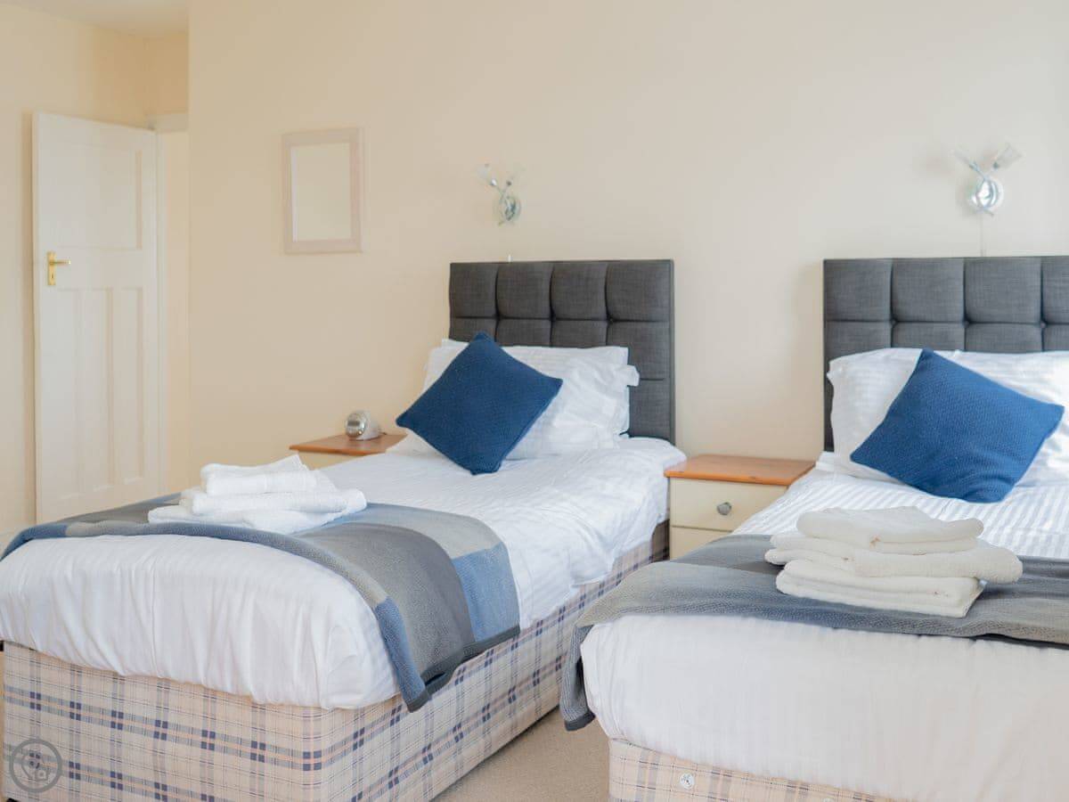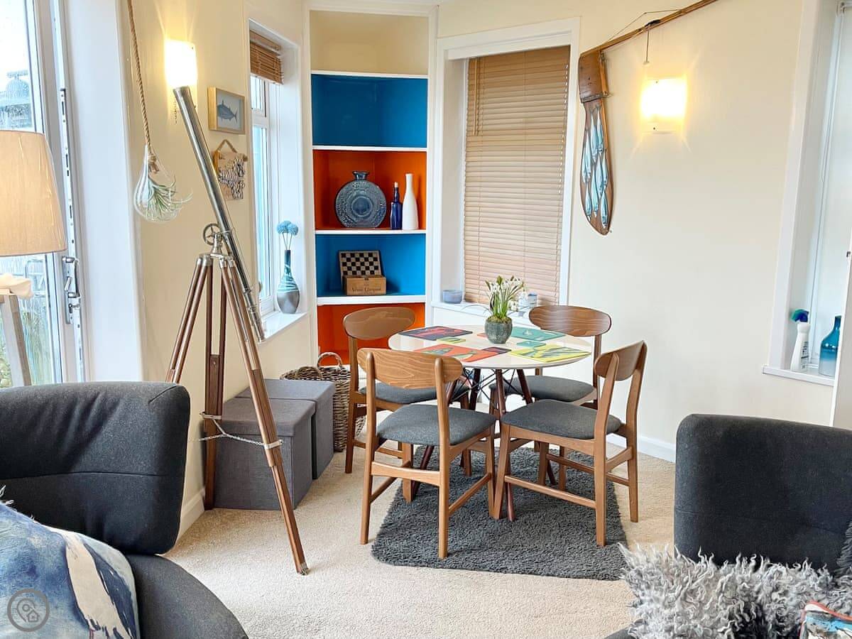 It sleeps four. Two bedrooms, one bathroom. The shape is a bit odd, it's like a triangle, because of where it's built on the hill. That means you get windows facing two ways, so you see a lot of the harbour and the sea from inside.