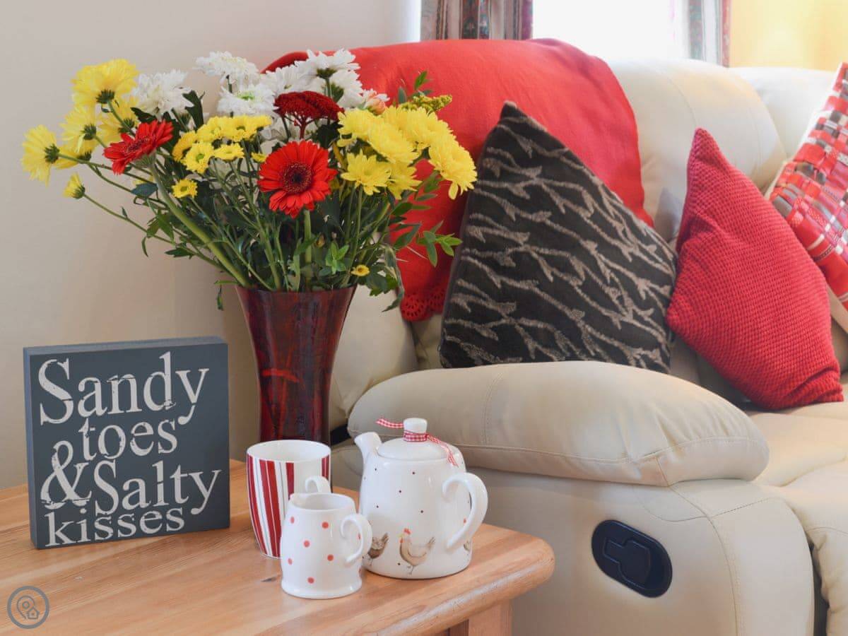 Sandpipers is one of three cottages next to our farmhouse in Derril. It's an upside-down house, so the bedrooms are on the ground floor and the living area is upstairs. That means the main room gets good light and looks out over the fields.