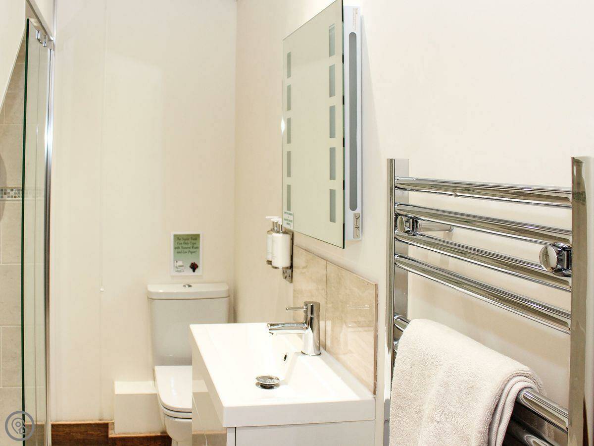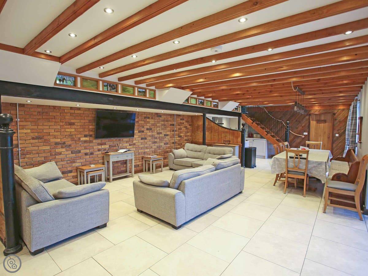 It sleeps six. Three bedrooms, one bathroom. It's got a 4 Star rating. The conversion was done well, so you've got things like beams and underfloor heating on the ground floor. It stays warm.