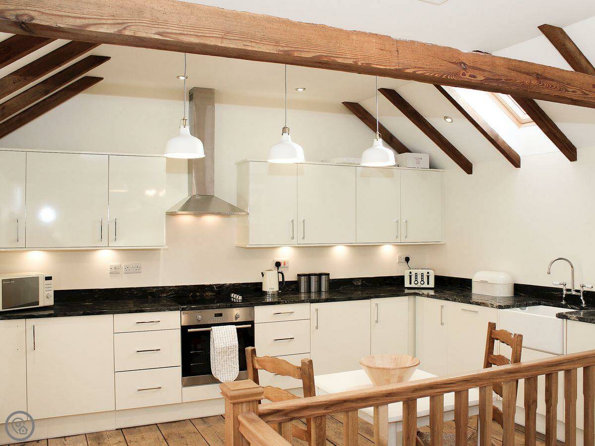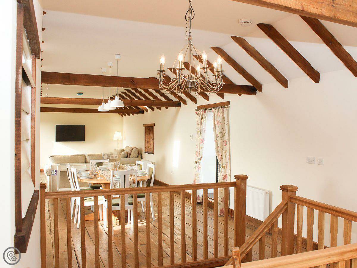 Being a converted farm building, there are some quirks. The beams are low in places, so watch your head. The stairs are a typical farmhouse staircase, so they're a bit steeper than in a modern house.