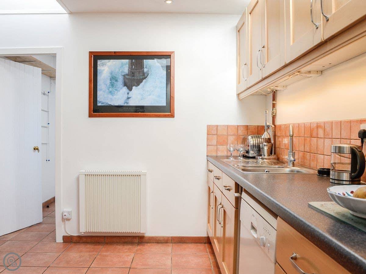 It sleeps four. Two bedrooms, one bathroom. It's got a 4 Star rating, so it's comfortable and well kept. Everything works. It's got a woodburning stove, which is good for taking the edge off the evening, and there's a dishwasher.