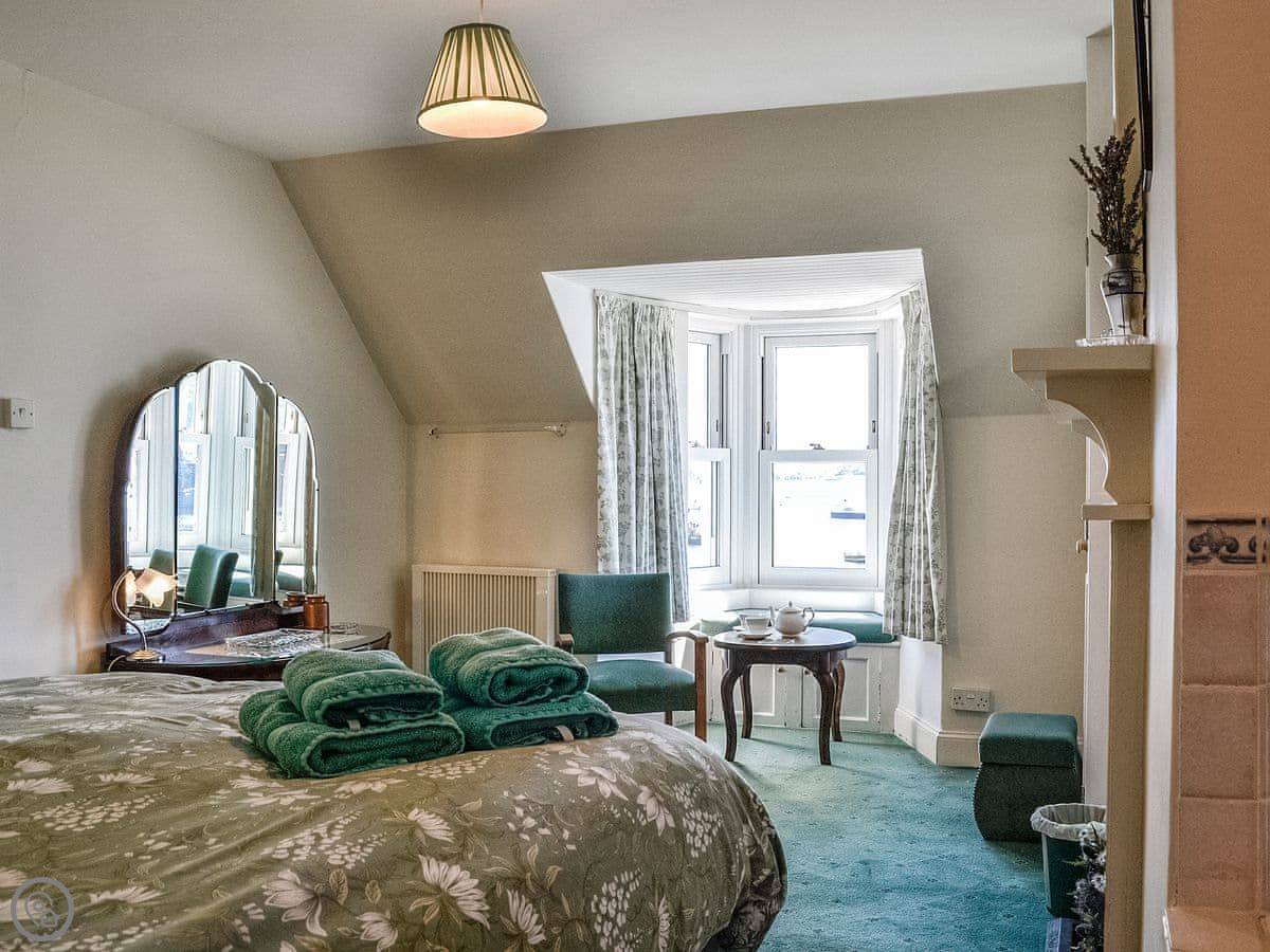 You're right in the middle of things. The shops and pubs are a couple of minutes' walk away. The beach is shingle, just down the road. The Caledonian Hotel does decent food. You can watch the ferry coming in.