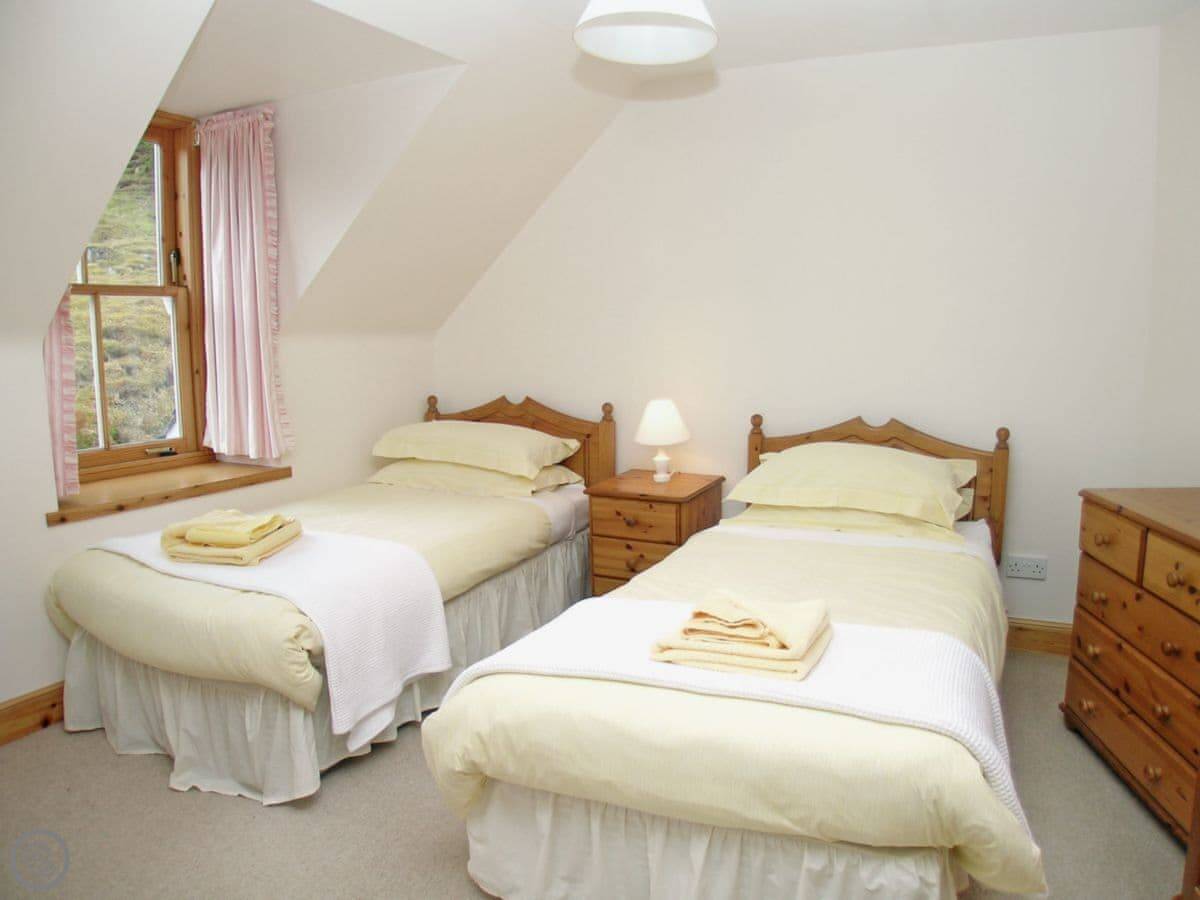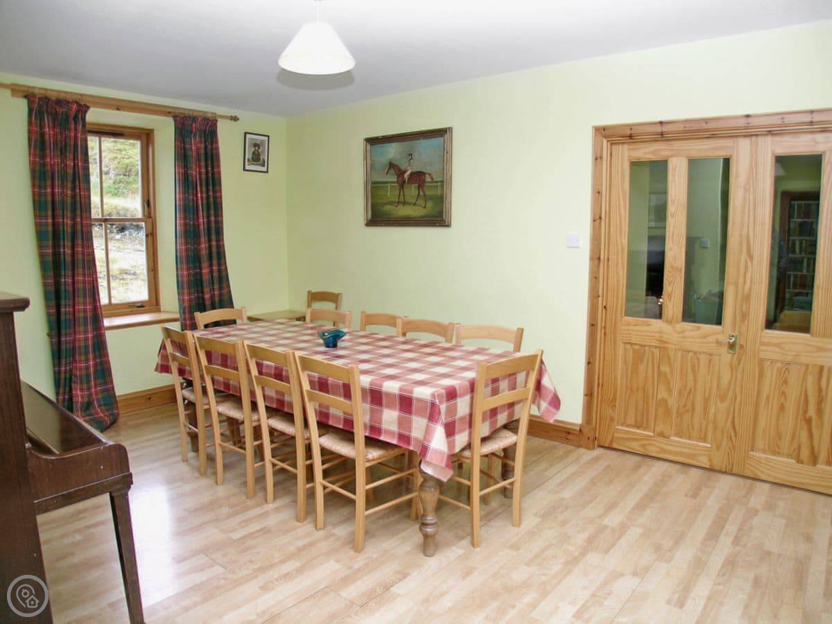 The house sleeps eight. There are four bedrooms and they each have their own bathroom. It has a 4 Star rating, so it's well equipped and comfortable. The drawing room has an open fire. It's a good house for a group, or a family.