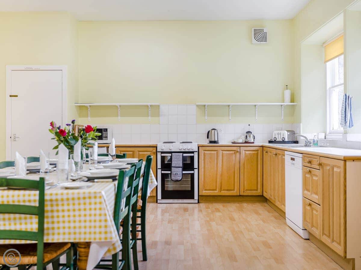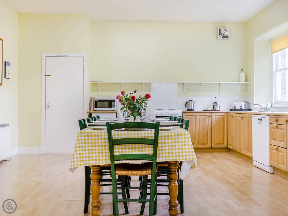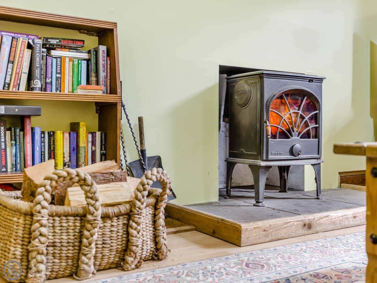 The house is well set up. It's got a wood burning stove, which is good for evenings. There's a dishwasher, washing machine, WiFi, and parking right there. Bedding and towels are included. You can bring one dog.