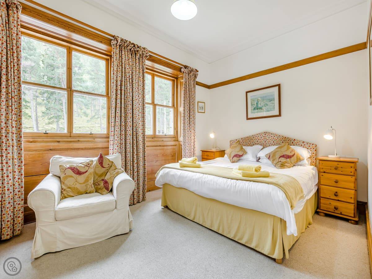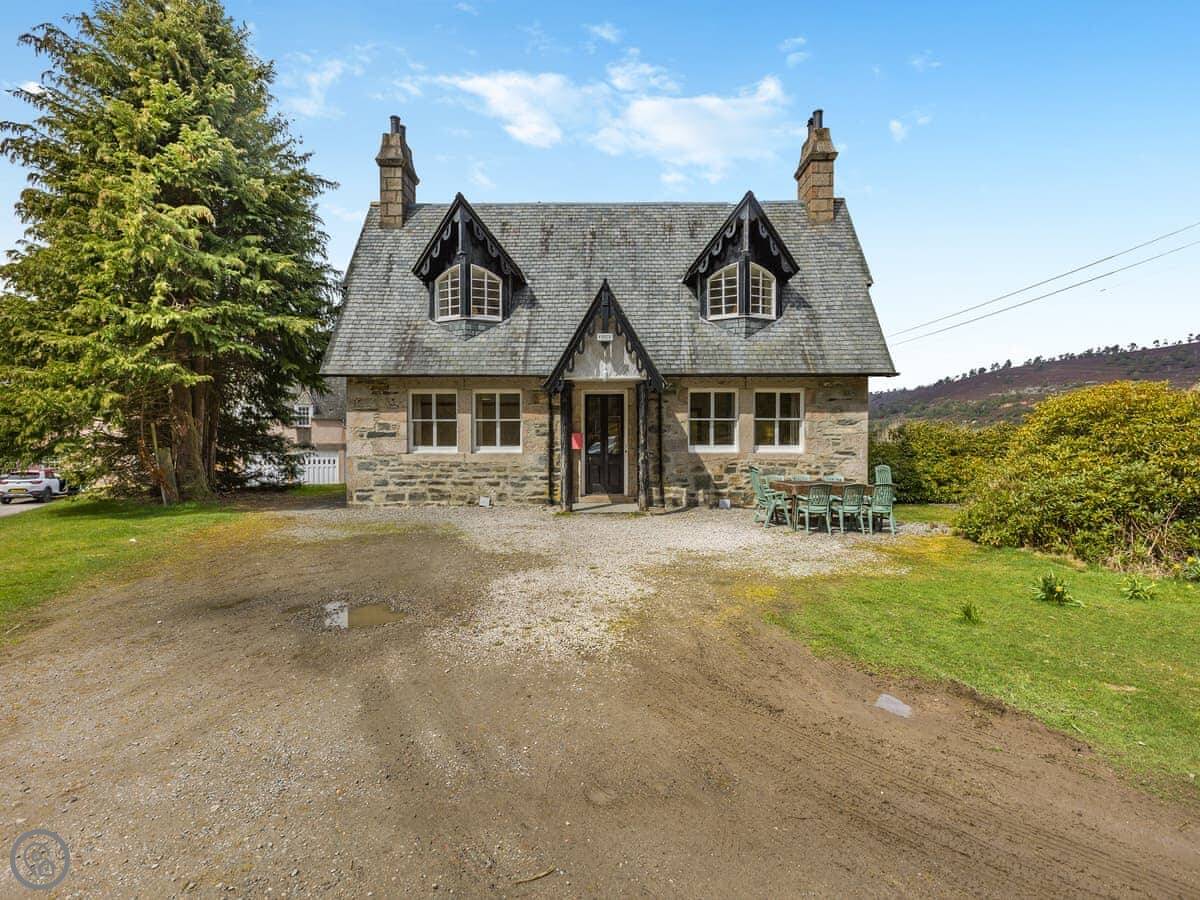 The Knock is in Inverey, on the Mar Estate. It's a proper stone house, detached, with trees around it. You get a good view across the Dee valley to Ben Macdui and the Cairngorms.
