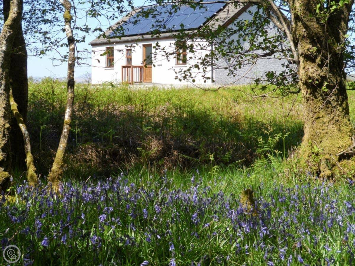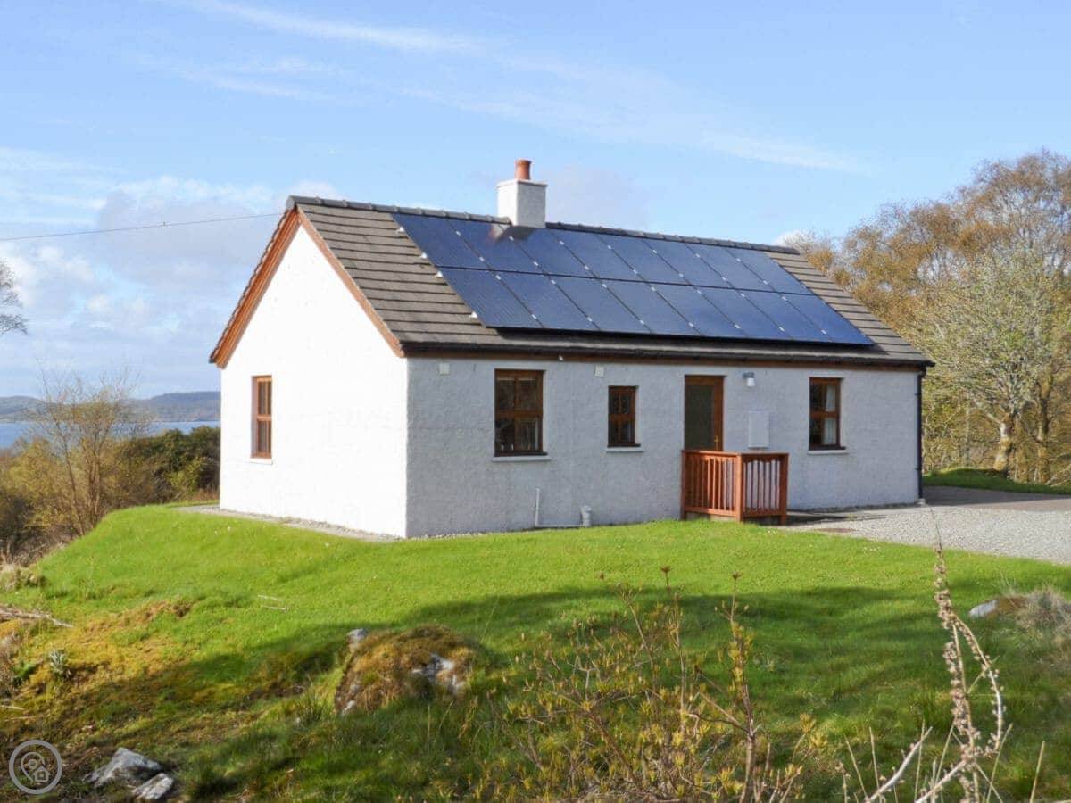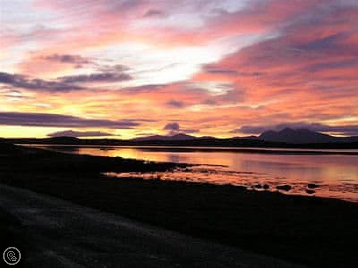 The view from the front is over fields to Loch Sween and the Isle of Jura. You get good sunsets. The cottage sits in a bit of a wooded spot, so you often see deer right from the windows. If you walk down to the shore, which isn't far, you might see seals or an otter.