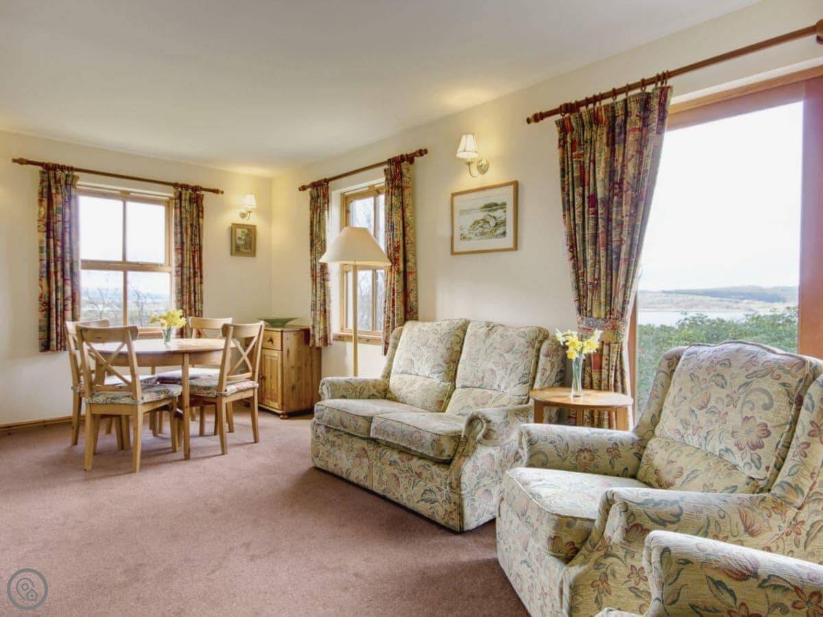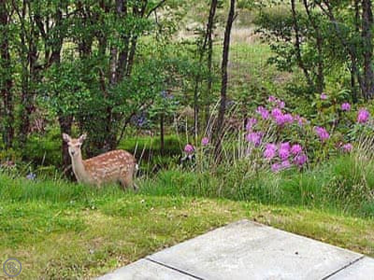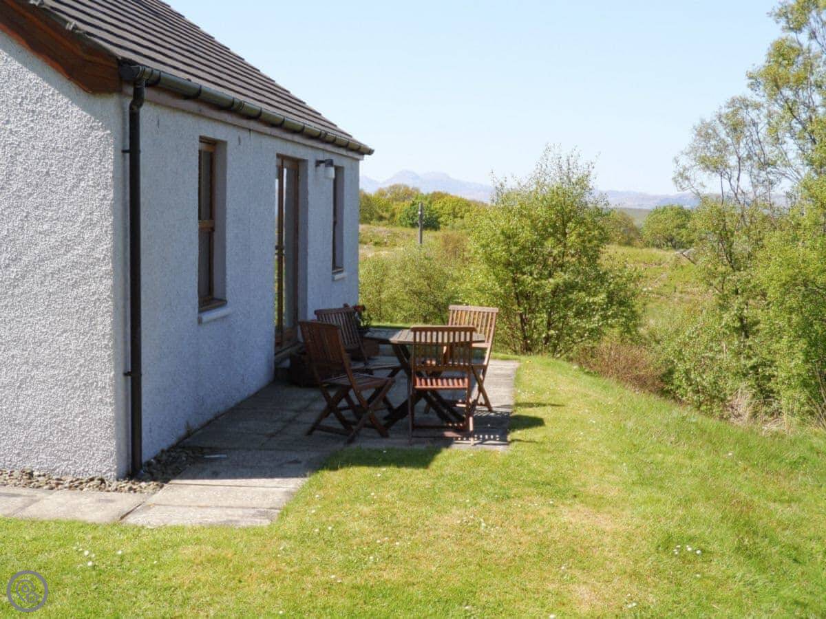 The view from the front is over fields to Loch Sween and the Isle of Jura. You get good sunsets. The cottage sits in a bit of a wooded spot, so you often see deer right from the windows. If you walk down to the shore, which isn't far, you might see seals or an otter.