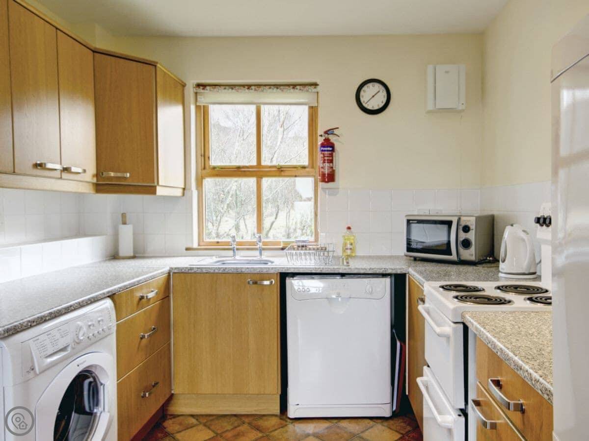 Facilities: it's got a washing machine, dishwasher, TV, and a barbecue outside. Bedding and towels are included. There's parking right there. We can provide a cot and highchair. You can bring up to two dogs.