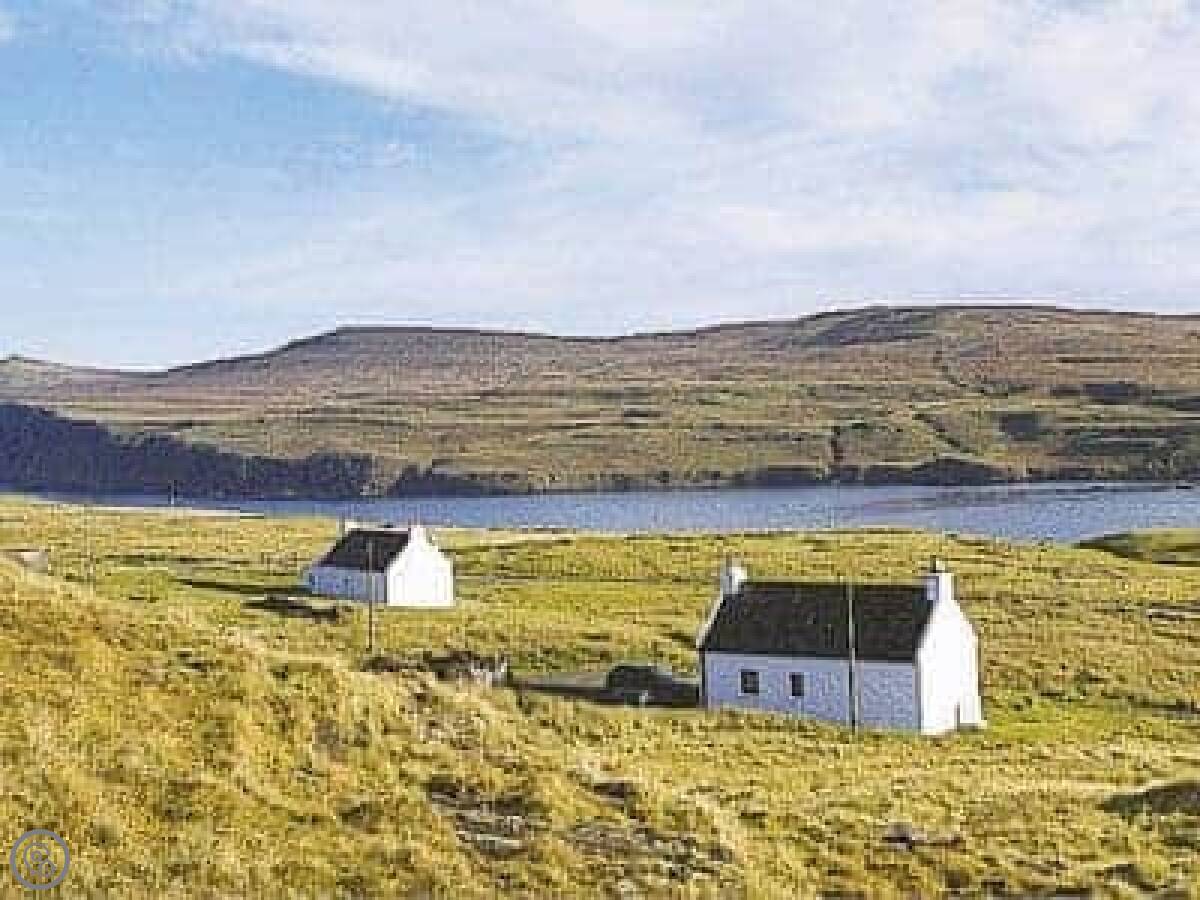 Lochview is in Milovaig, on the Duirinish peninsula of Skye. It's a detached crofthouse, so it's on its own. The view is all loch and hills.