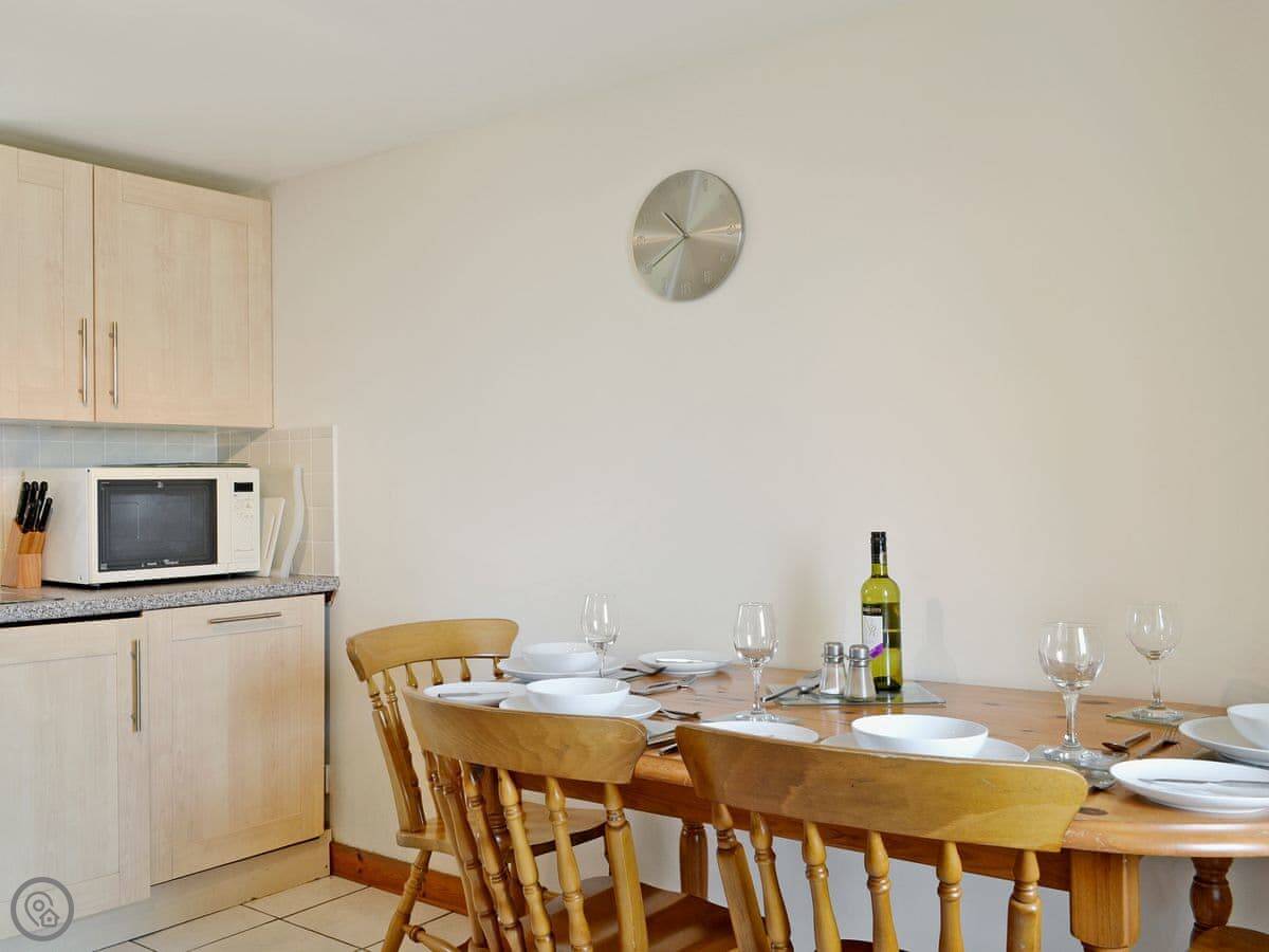 Inside, it's got what you need: a woodburning stove, dishwasher, washing machine, TV and WiFi. Bedding and towels are included. There's no shower, just a bath. No pets.