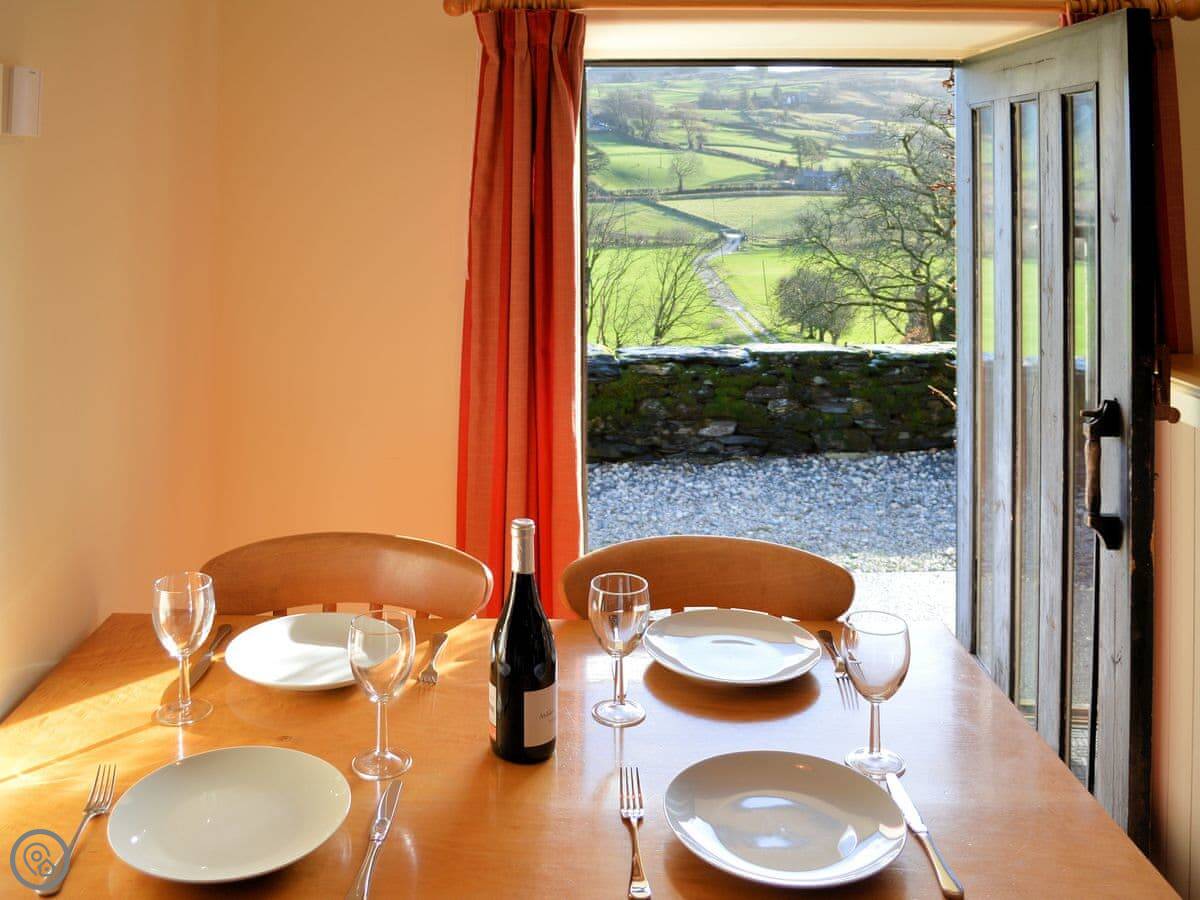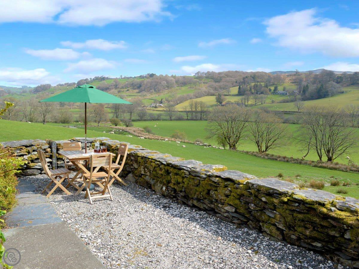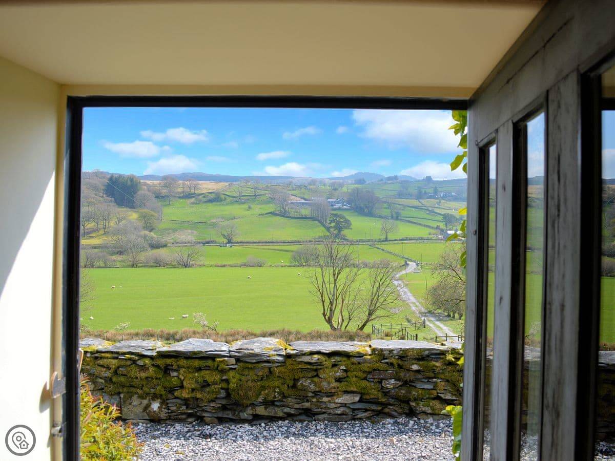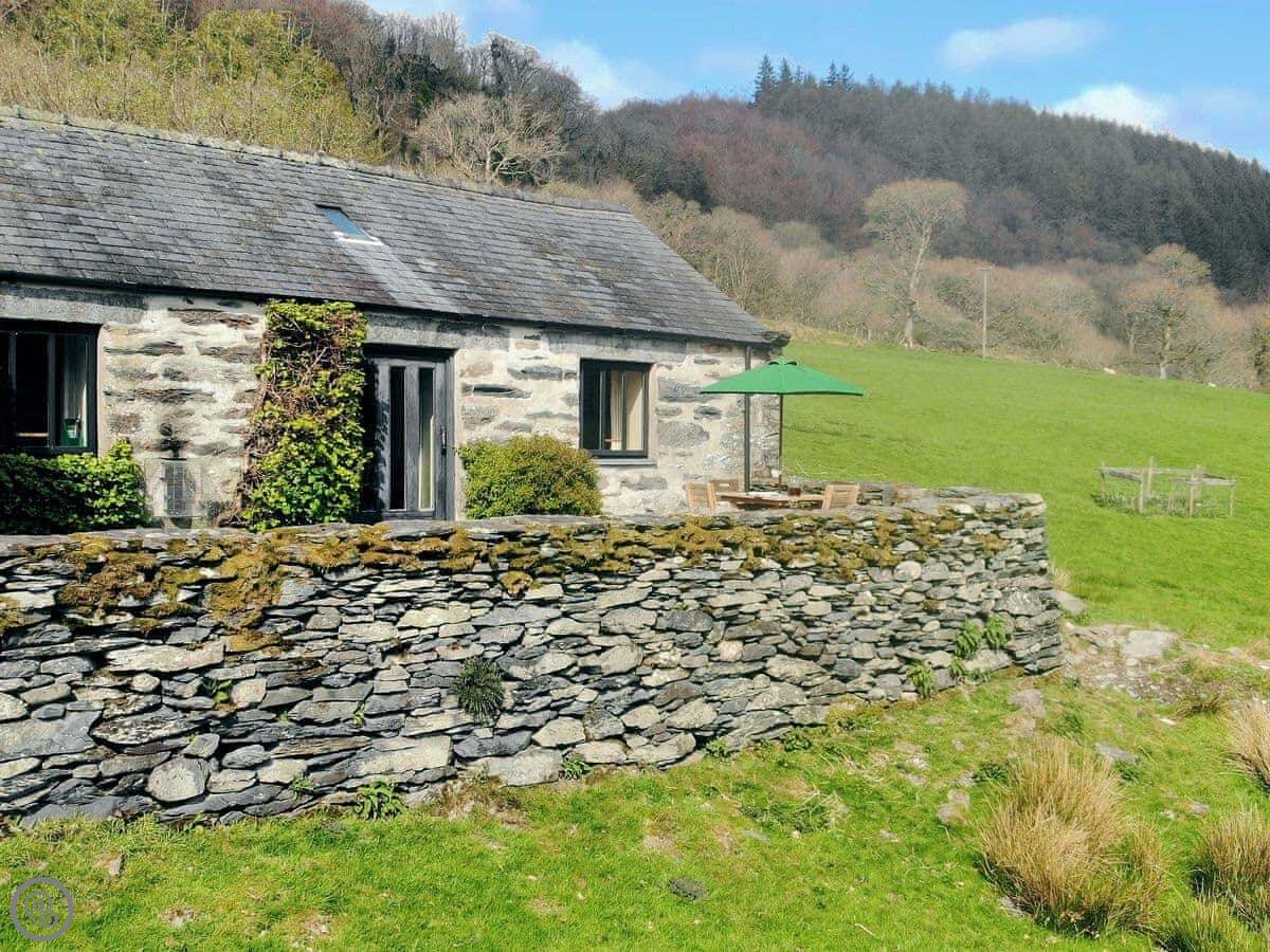 This is Y Llaethdy. It's one of three cottages here at Benar, up on the hillside above Penmachno. It's all on one floor, so no stairs to worry about.
