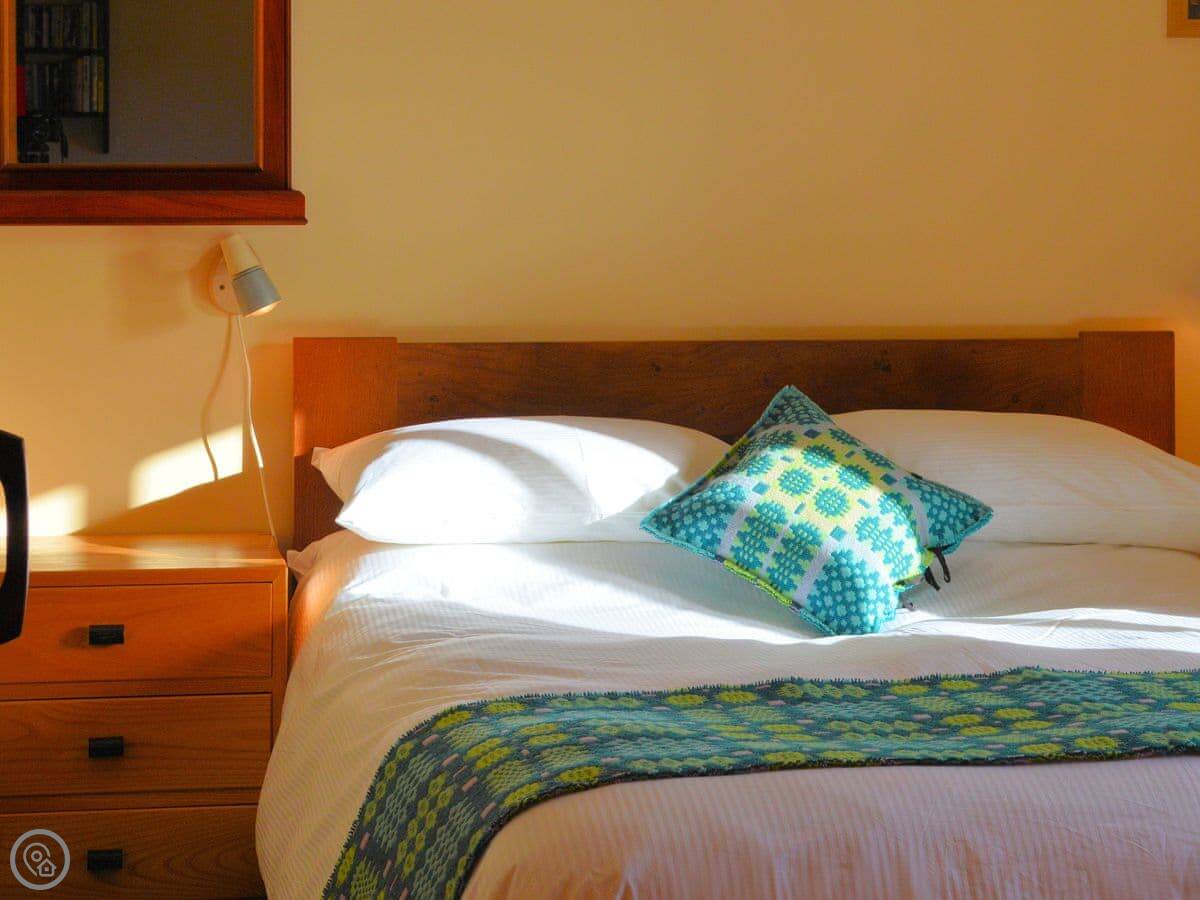 It sleeps four. Two bedrooms, one bathroom with a shower. It's got a 4 Star rating. It's modern, clean and warm. There's underfloor heating and a woodburner for the evenings.