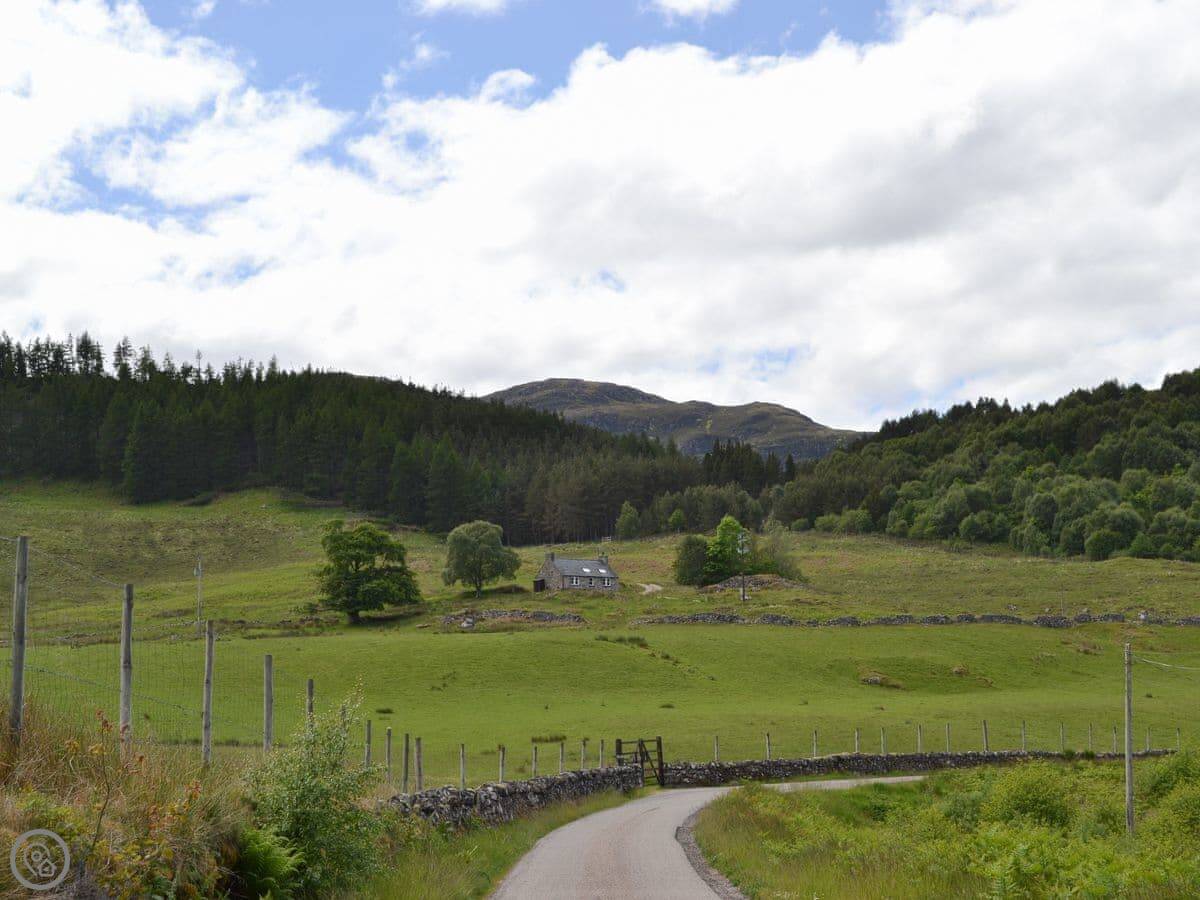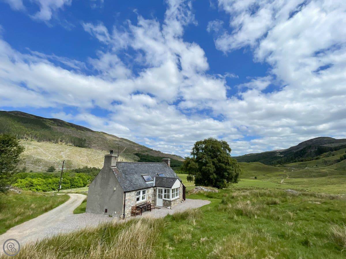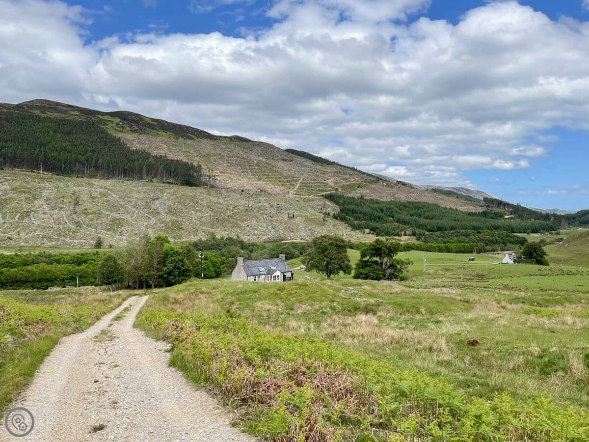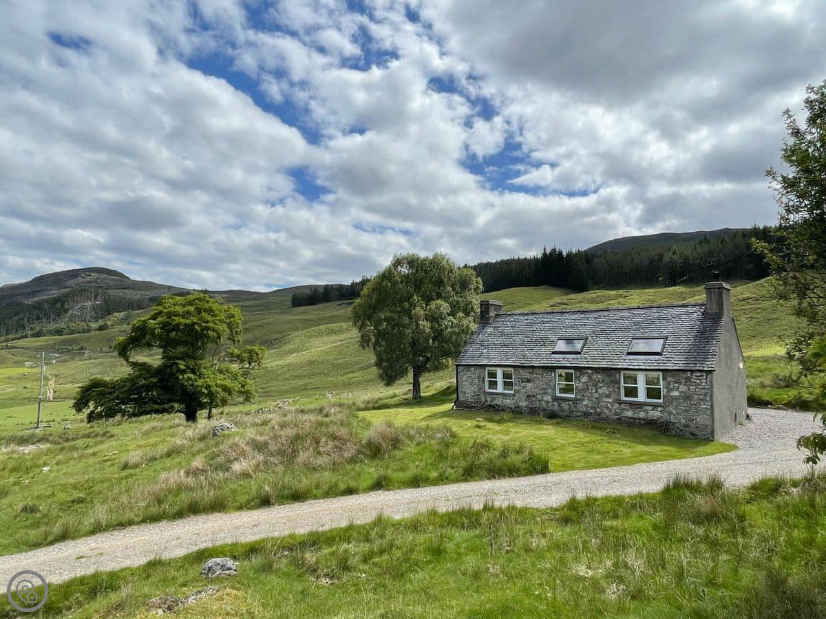 Glacour Studio Cottage is in Grudie, in Strathconon. It's a detached building, a converted croft house. It's very quiet. No mobile reception. You'll need to want peace and quiet.