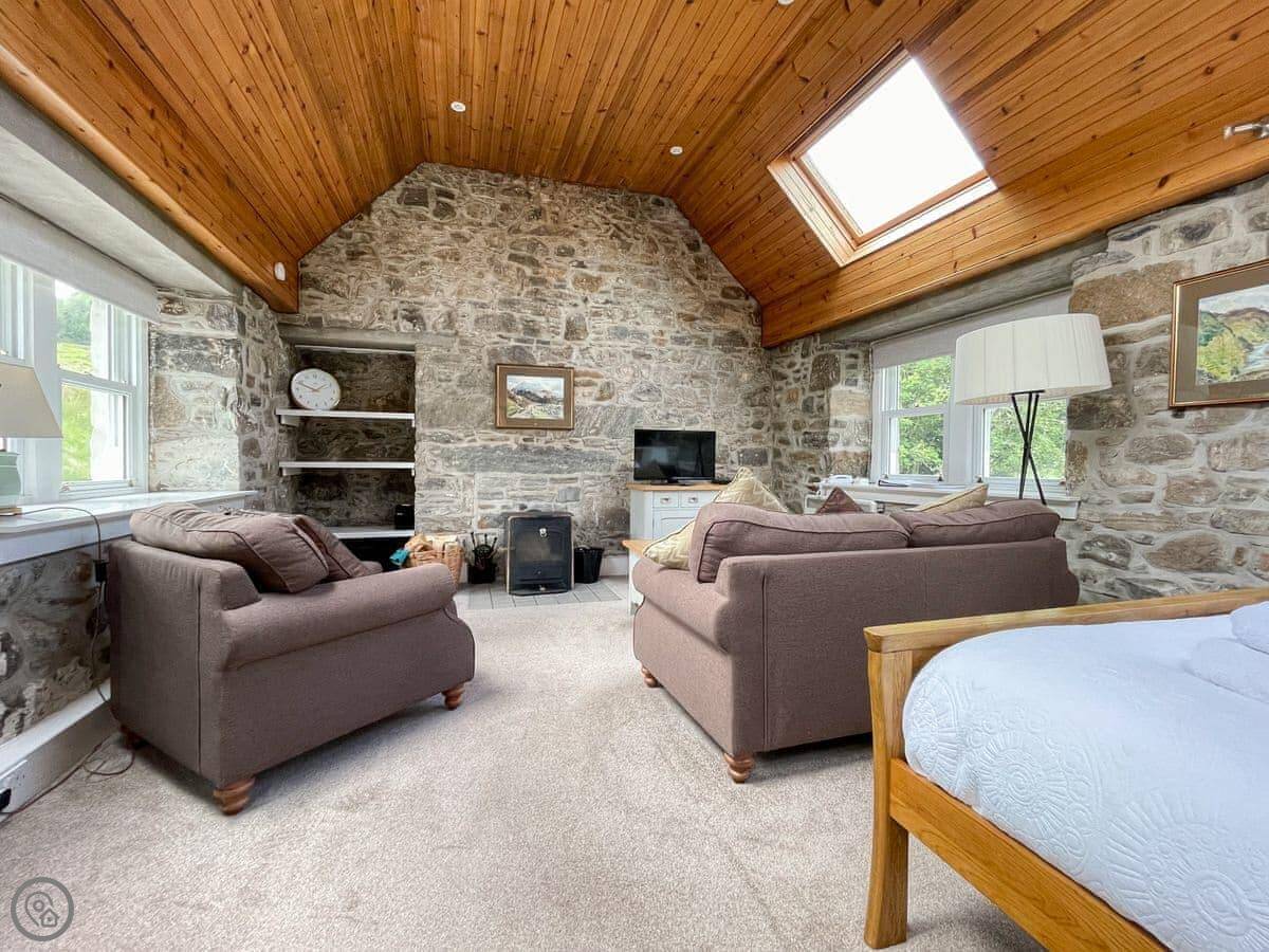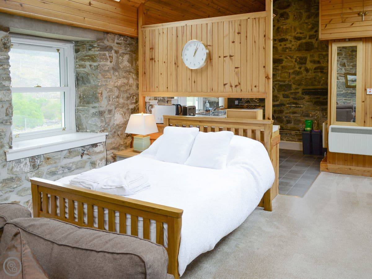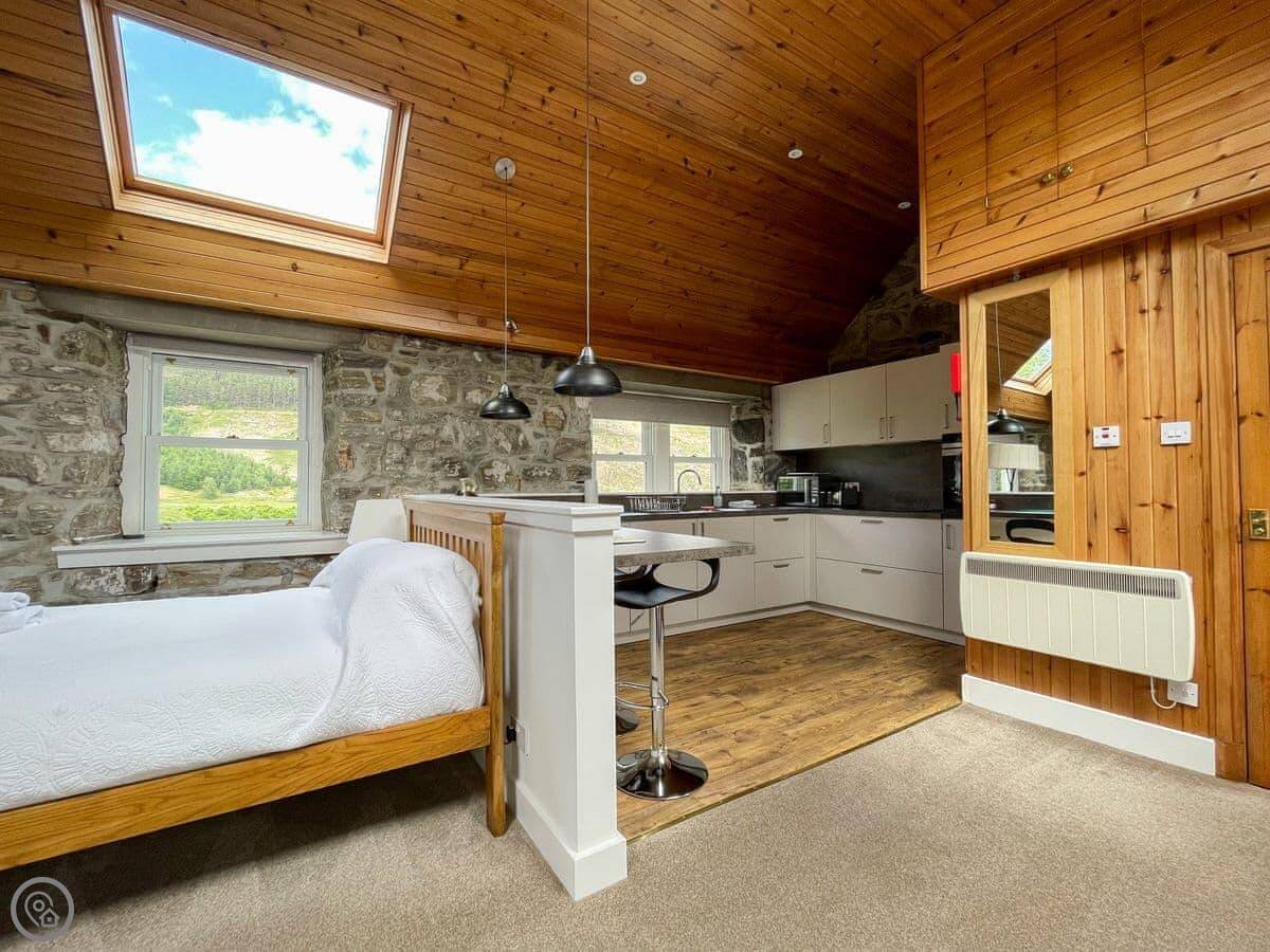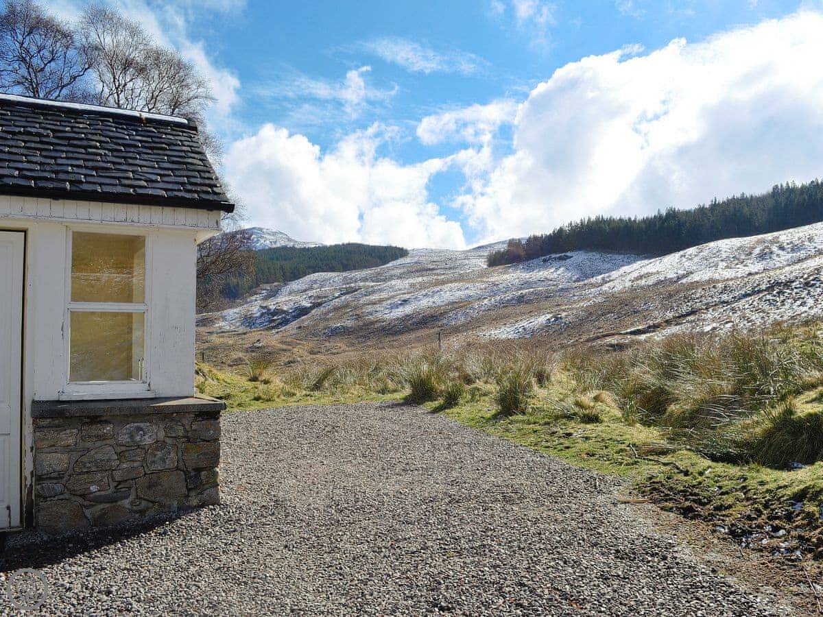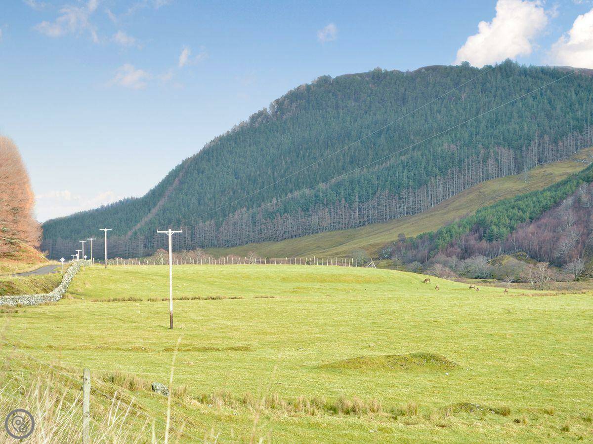 Glacour Studio Cottage is in Grudie, in Strathconon. It's a detached building, a converted croft house. It's very quiet. No mobile reception. You'll need to want peace and quiet.