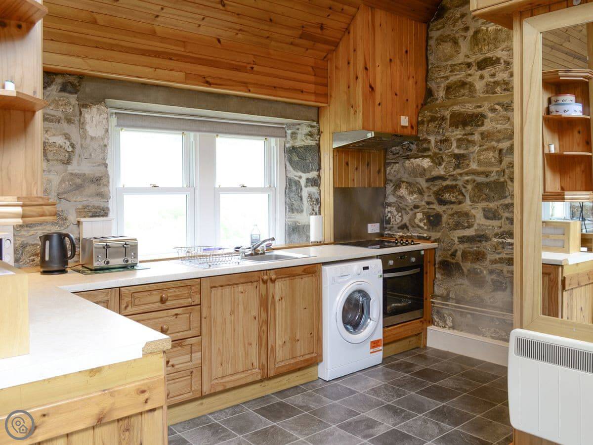 There's a woodburning stove, which is fine. It's on electric heating and we leave a bit of wood to get you started. There's a washing machine. Parking is right outside.