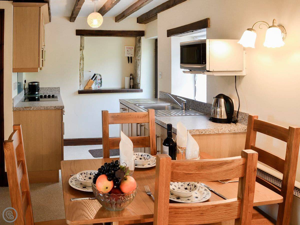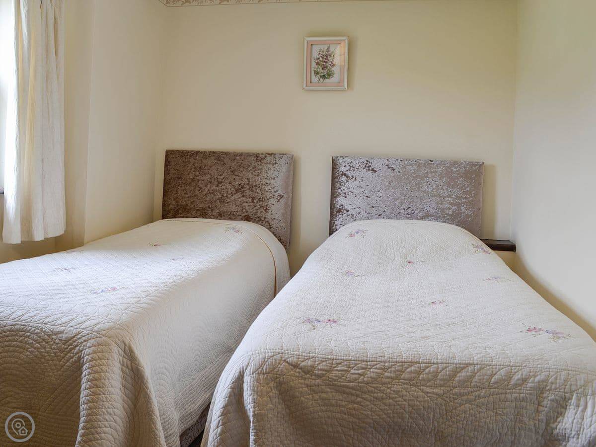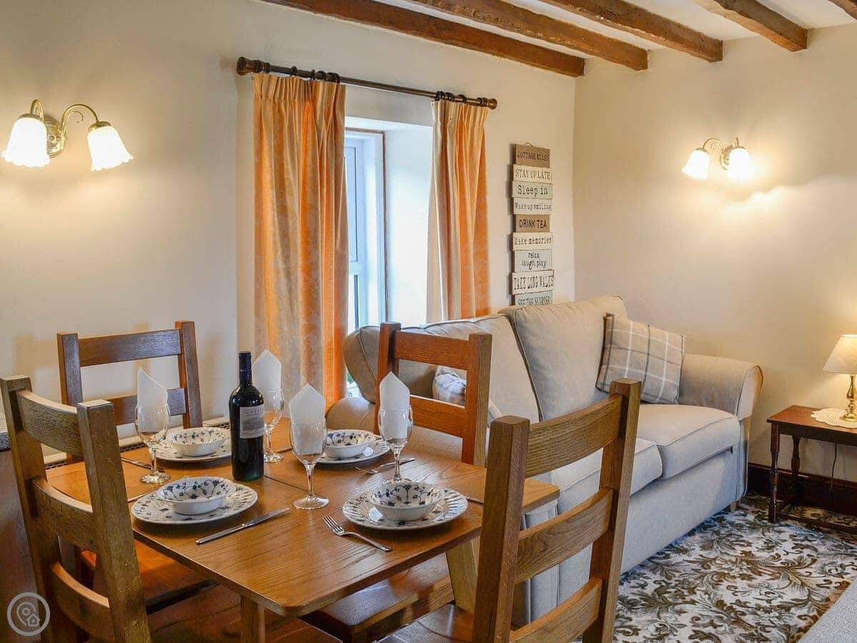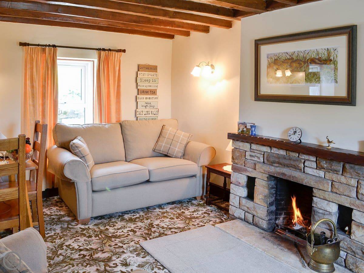 The cottage sleeps four. Two bedrooms, one bathroom. It's got a 3 Star rating, so it's comfortable and clean. There's an open plan living area downstairs with a woodburning stove. The stairs are a bit steep, like most old places round here.