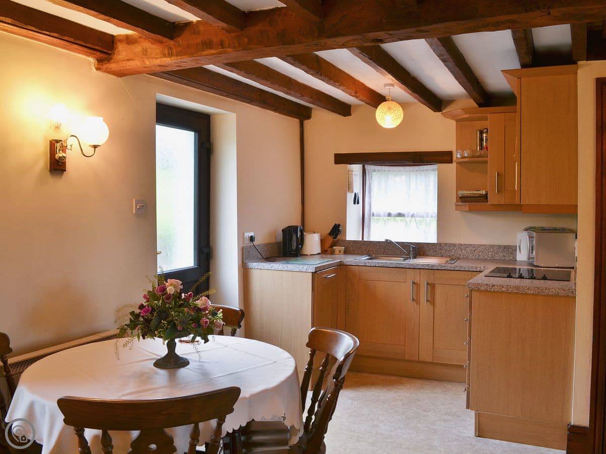 It sleeps four. Two bedrooms, one bathroom. It's got a 3 Star rating, so it's comfortable and clean. There's a wood burner and a dishwasher. The parking is right outside.