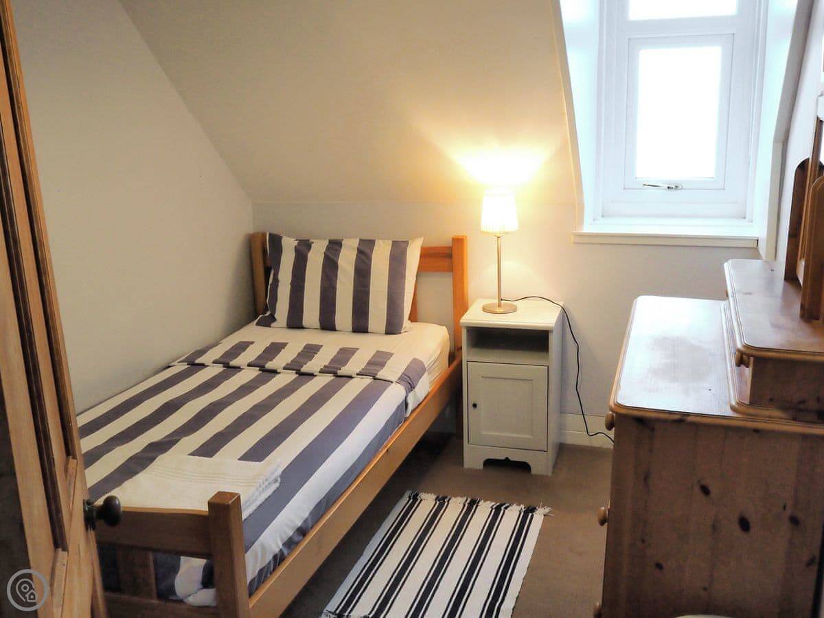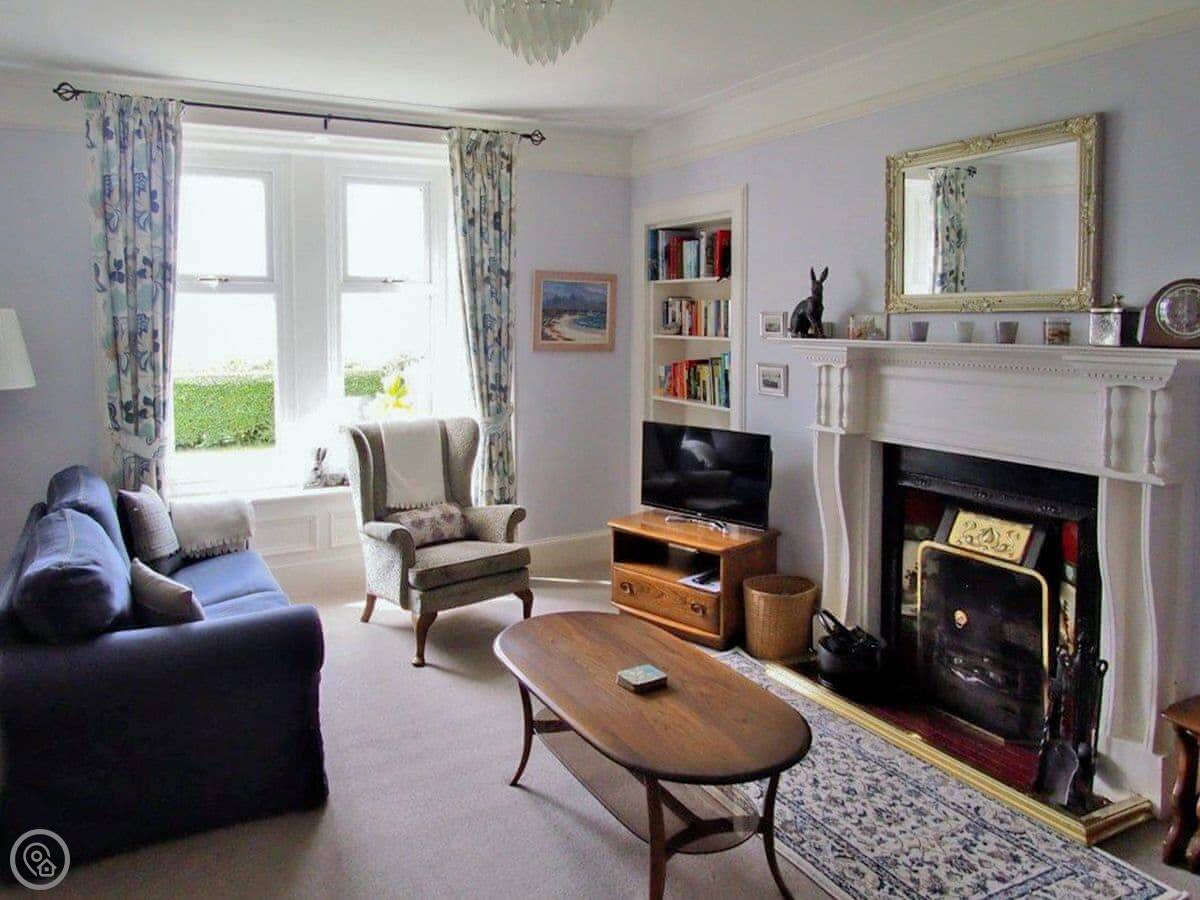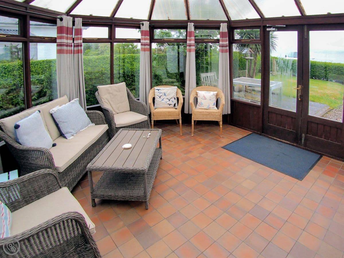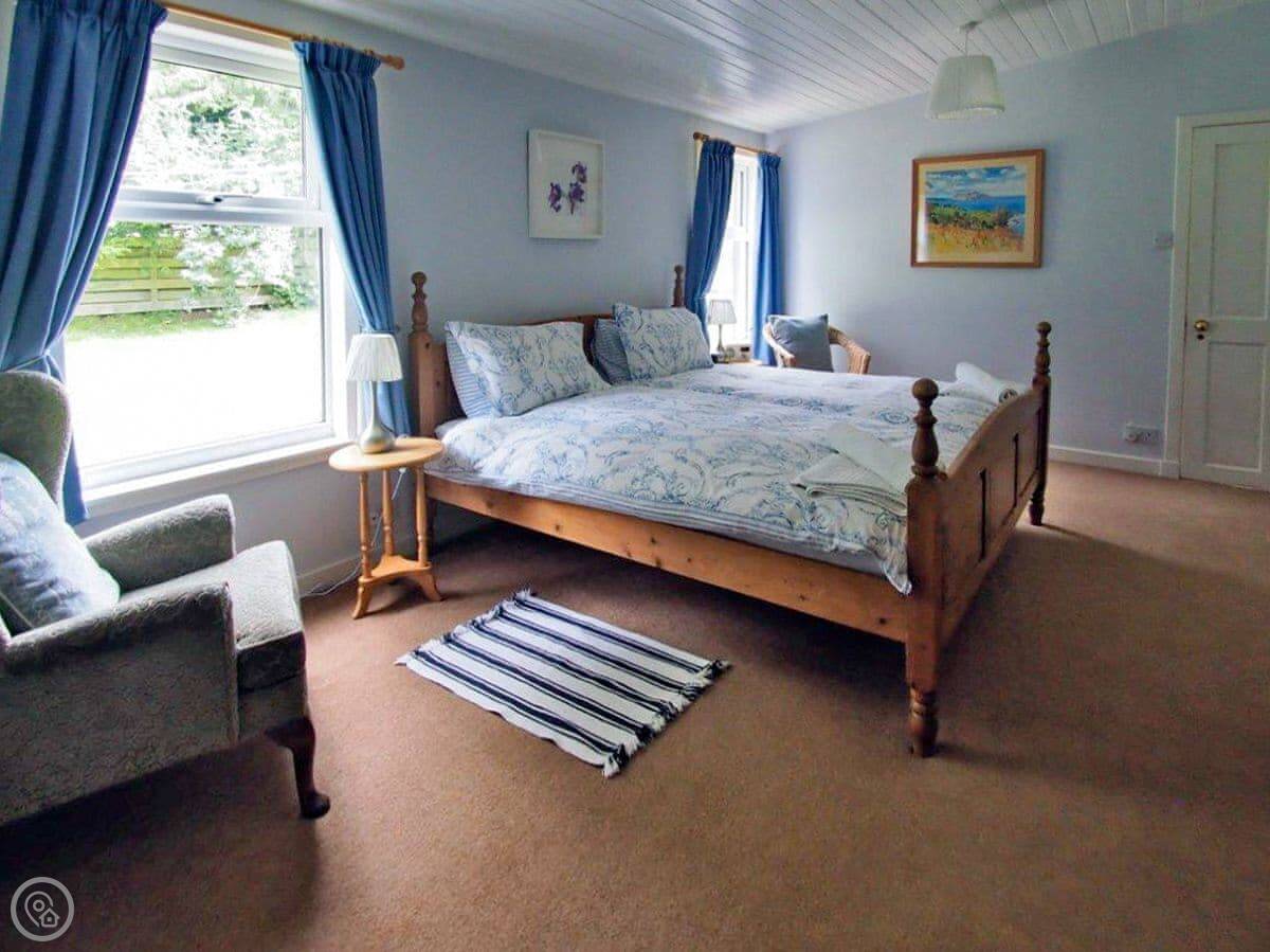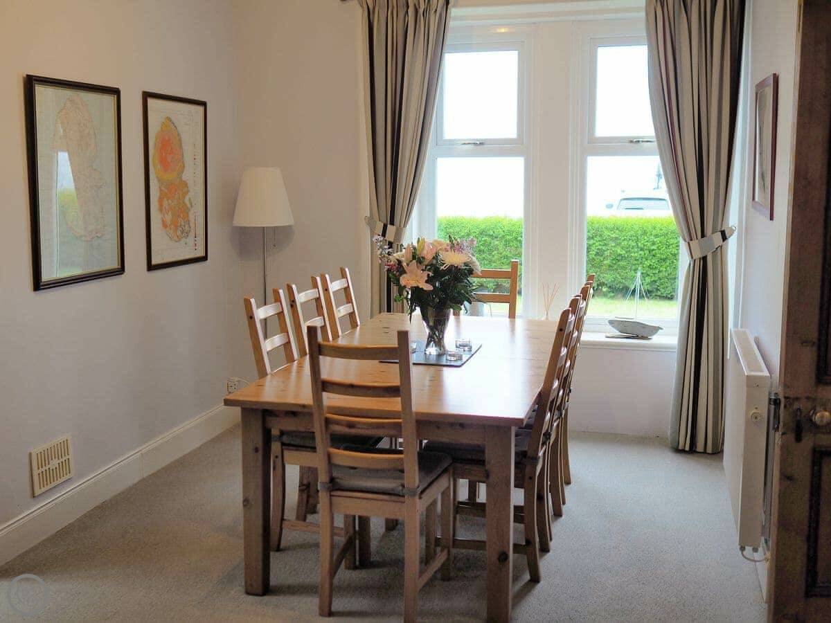 It sleeps seven in four bedrooms. There's one bathroom. It's got a 4 Star rating. The place is spacious and comfortable. A lot of the rooms face the sea, and the conservatory is good for watching the sun go down over the Kilbrannan Sound.