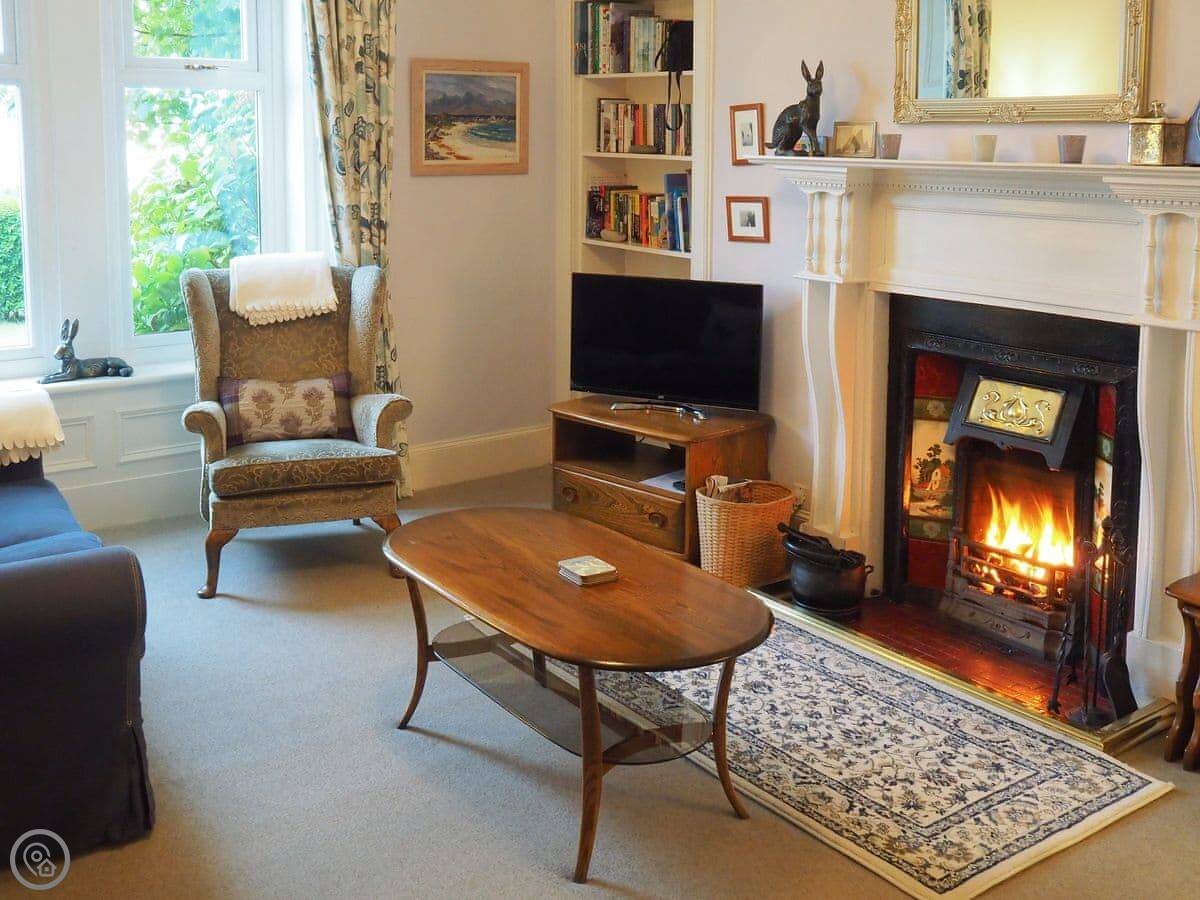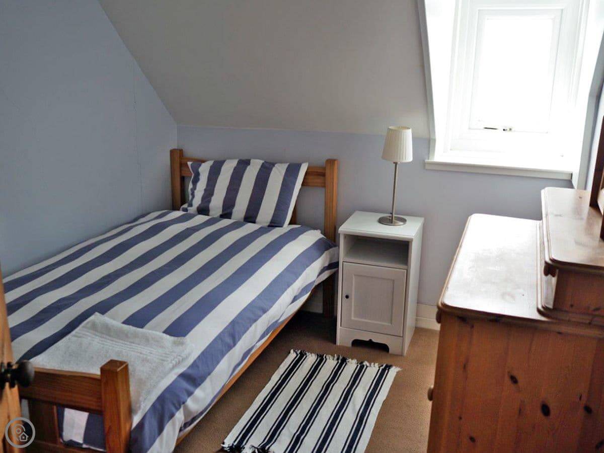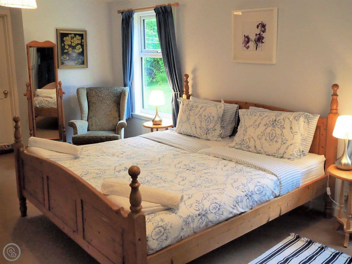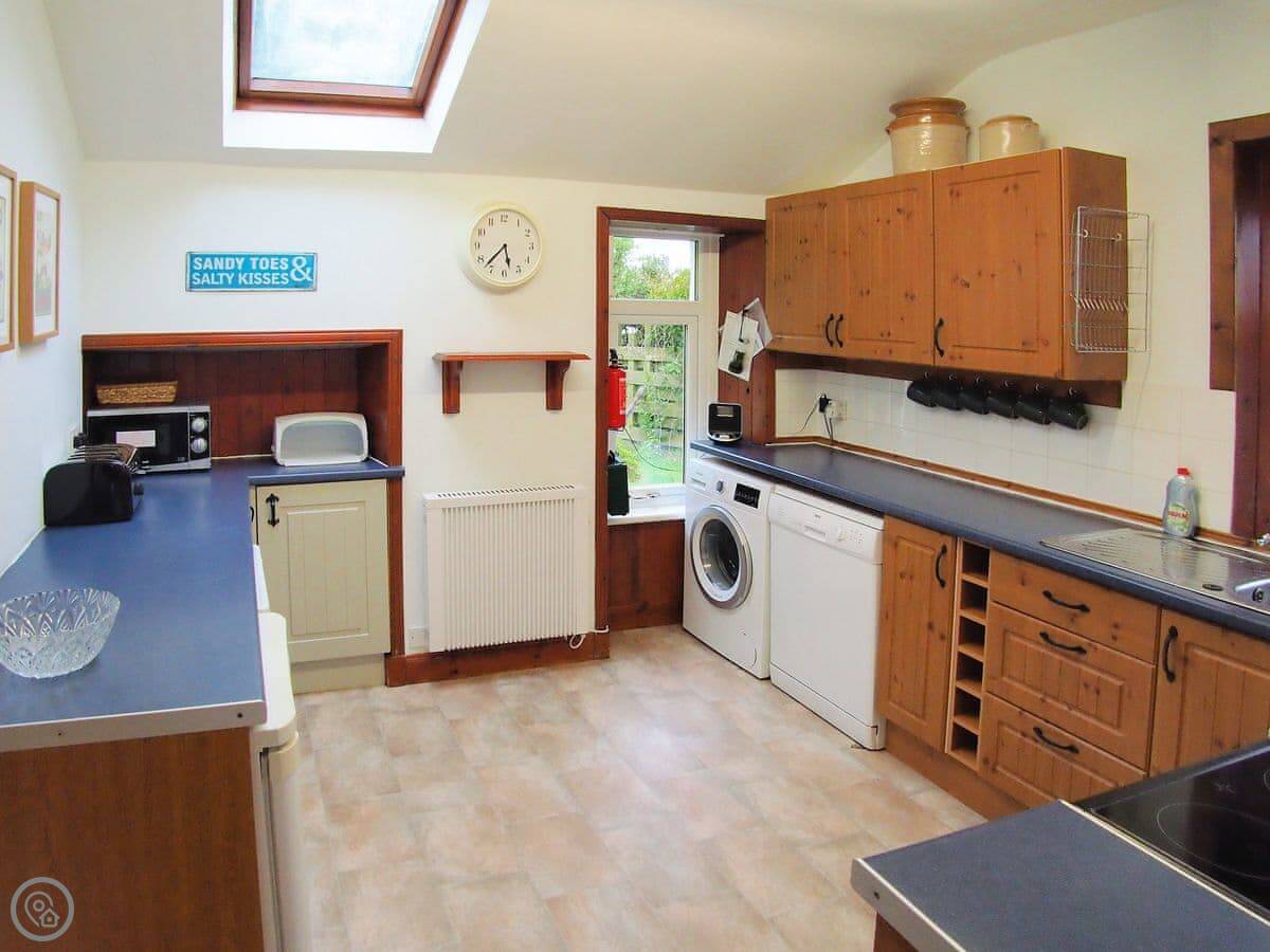 It sleeps seven in four bedrooms. There's one bathroom. It's got a 4 Star rating. The place is spacious and comfortable. A lot of the rooms face the sea, and the conservatory is good for watching the sun go down over the Kilbrannan Sound.