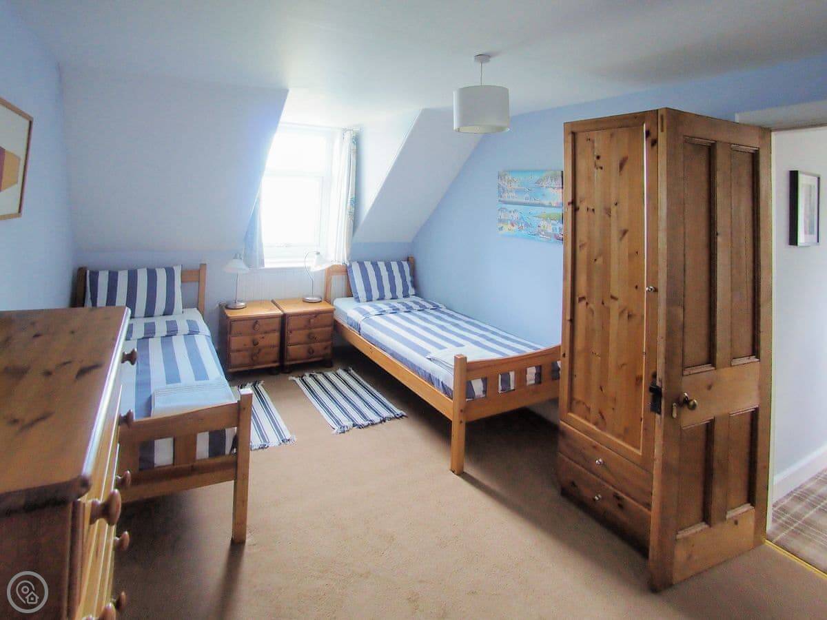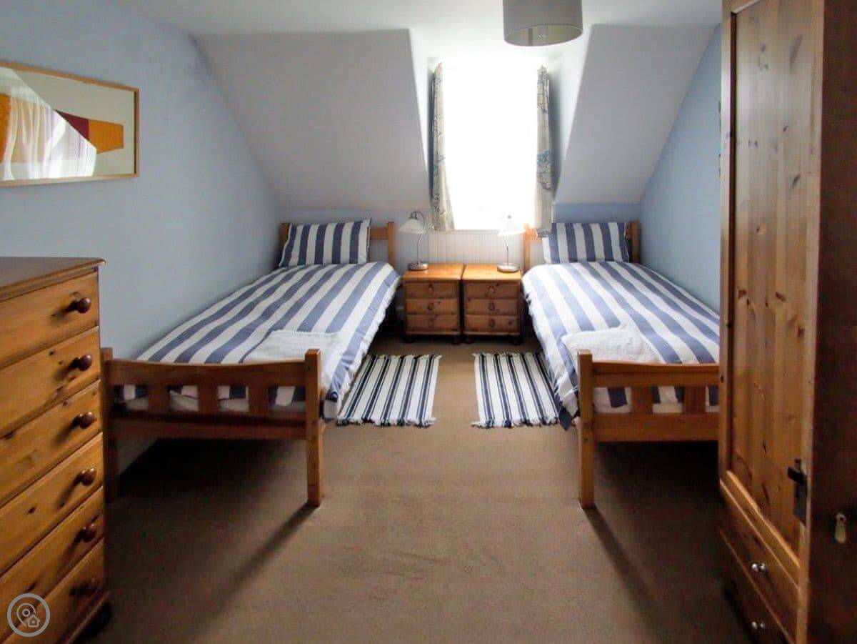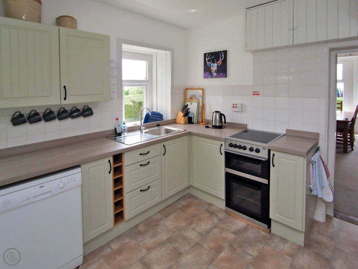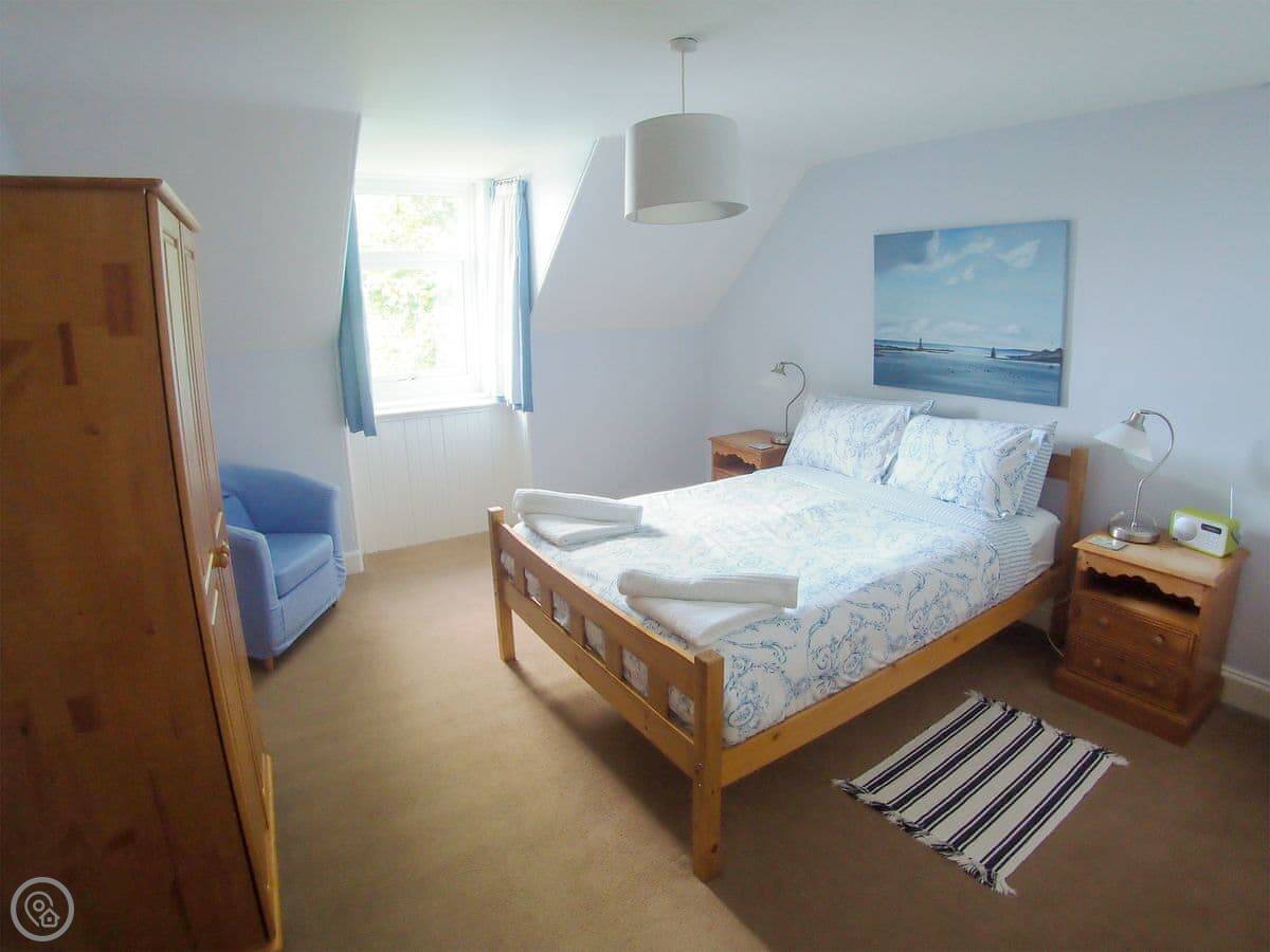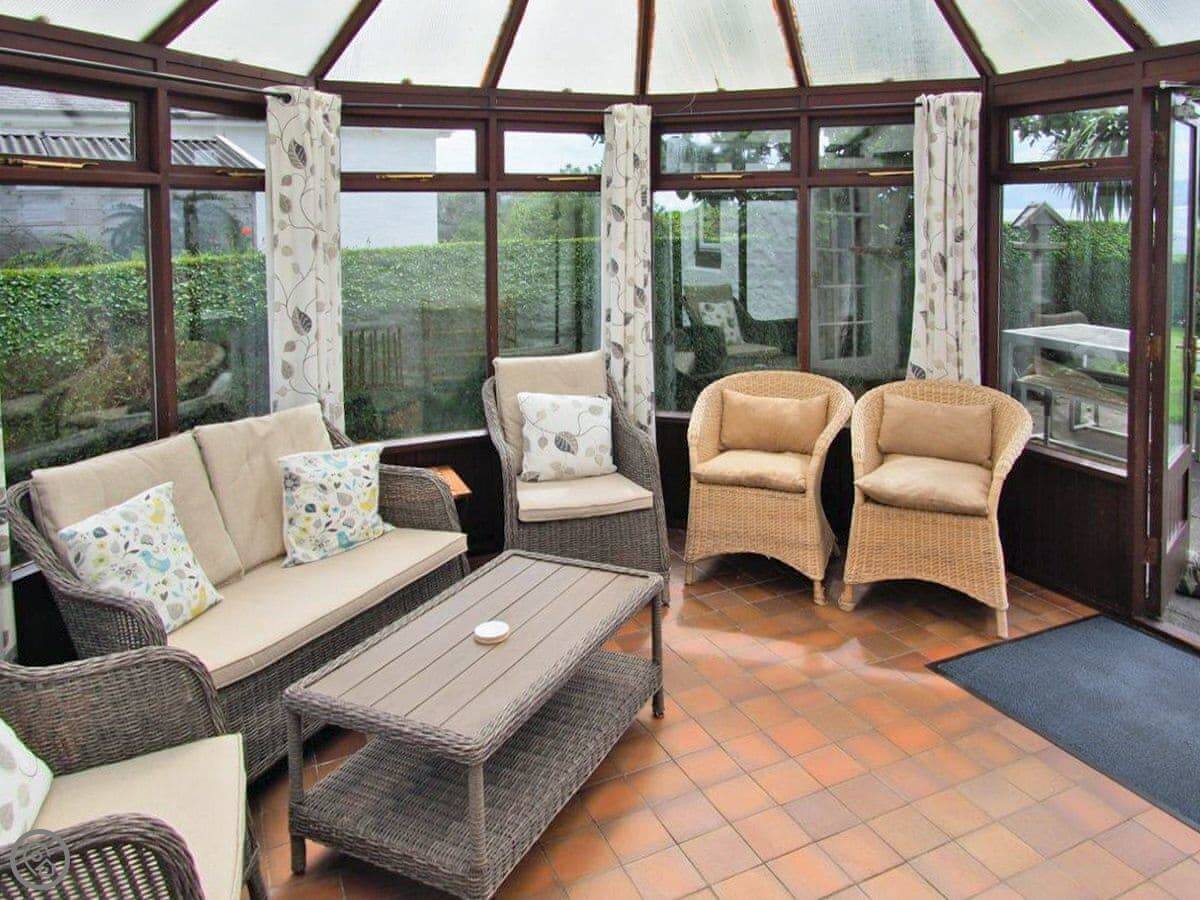 It sleeps seven in four bedrooms. There's one bathroom. It's got a 4 Star rating. The place is spacious and comfortable. A lot of the rooms face the sea, and the conservatory is good for watching the sun go down over the Kilbrannan Sound.