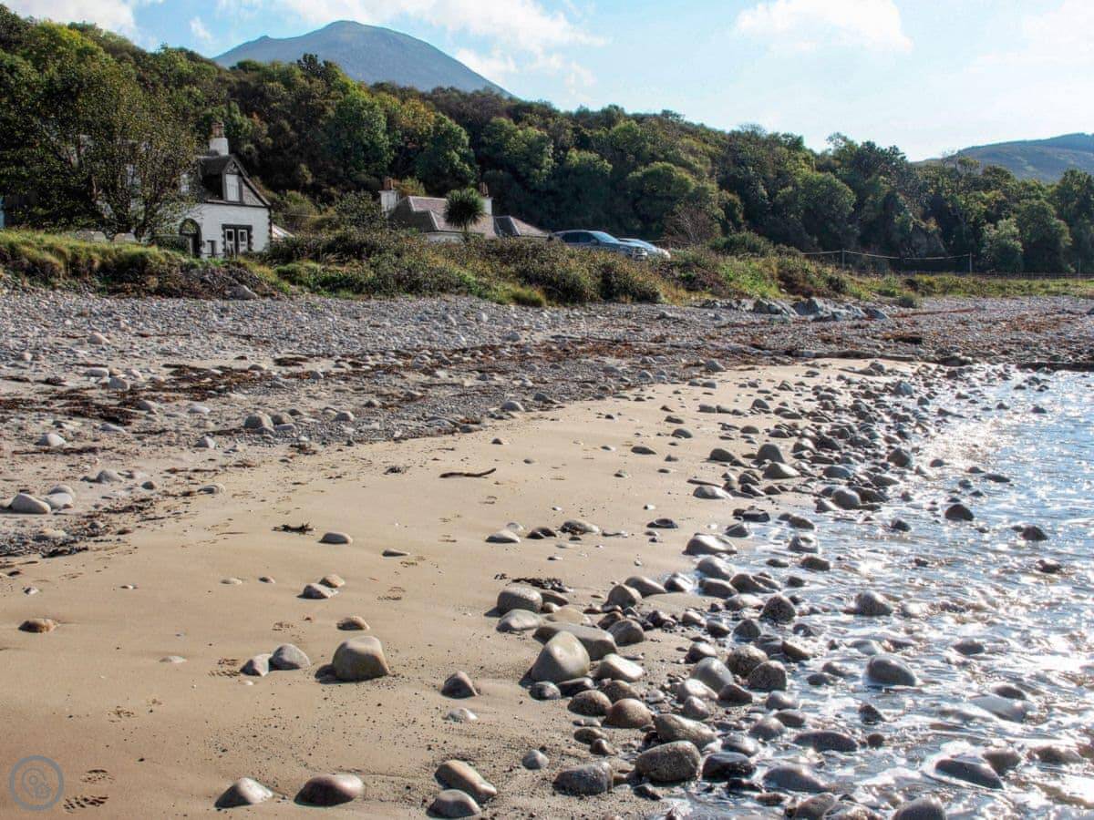 Dunmaghlas is in Pirnmill, on the west coast of Arran. It's a detached cottage right on the seashore. The beach is shingle and about fifteen yards from the gate.