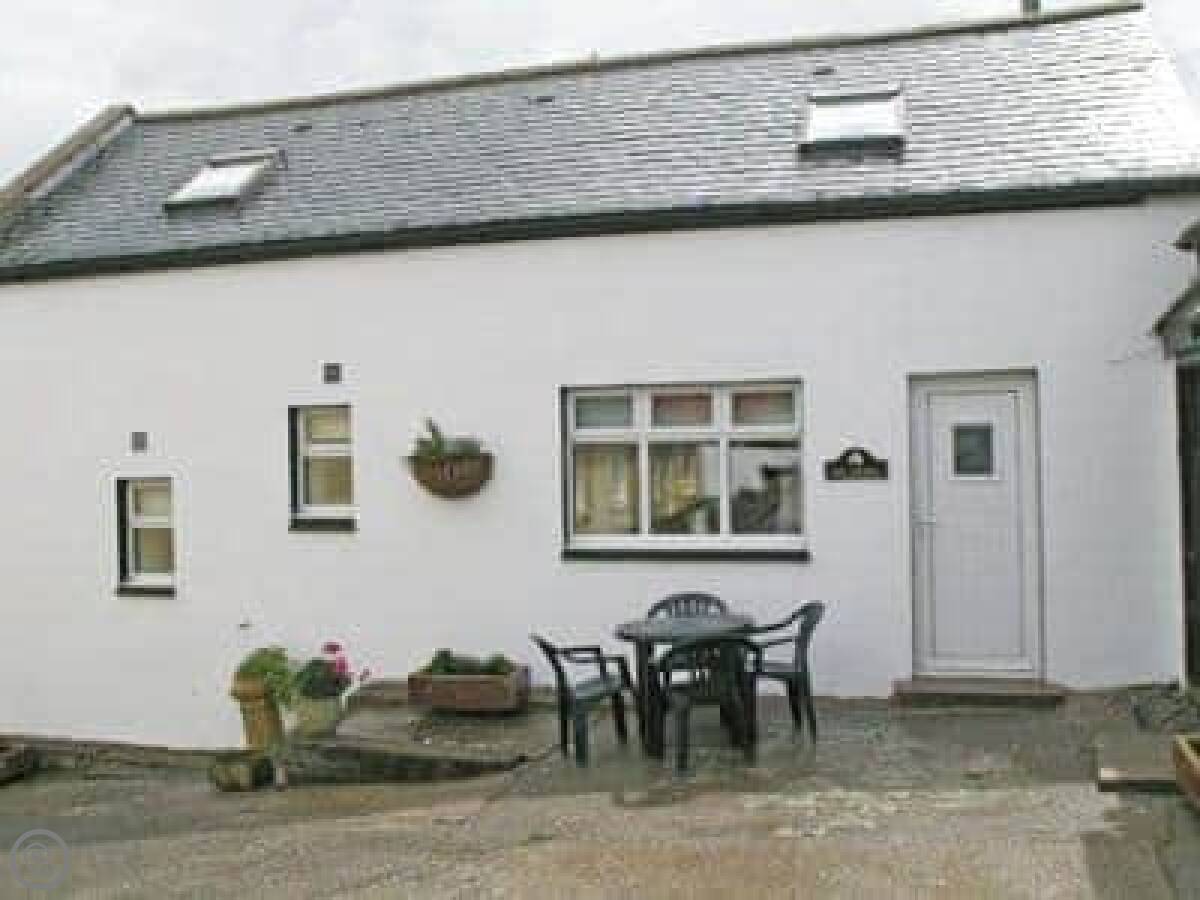 The Stable is on our small holding just outside Stranraer. It's a converted farm building, so it's one solid stone box. You get the patio and garden area to yourselves. It looks out over fields.