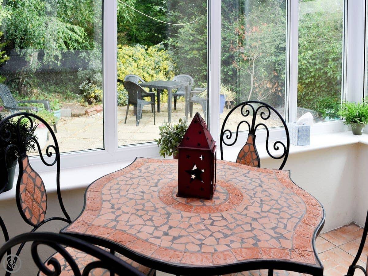 The garden is enclosed. There's a conservatory with a table that looks out over it. You can sit in there even when it's raining.