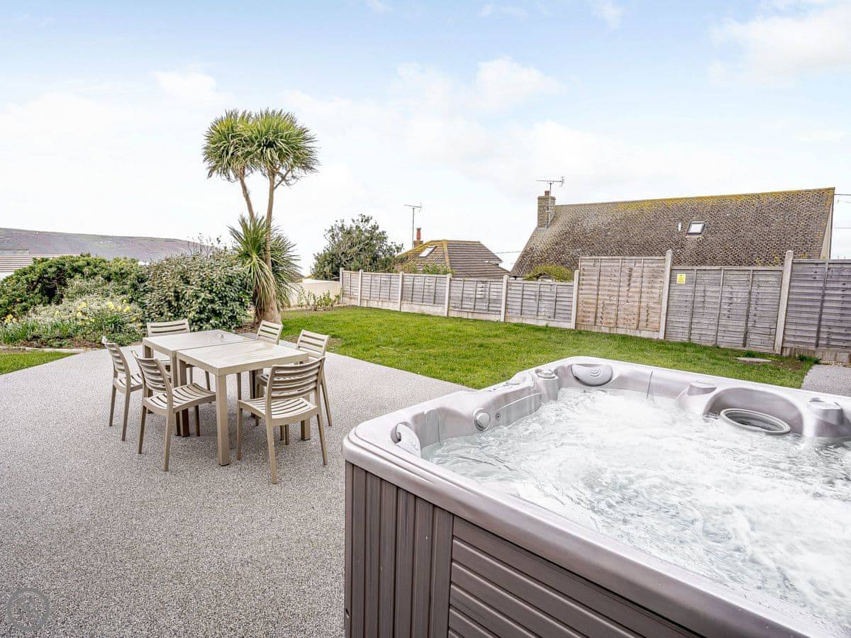 You've got your own garden here, with a patio and a private hot tub. There's an electric vehicle charger on the driveway.