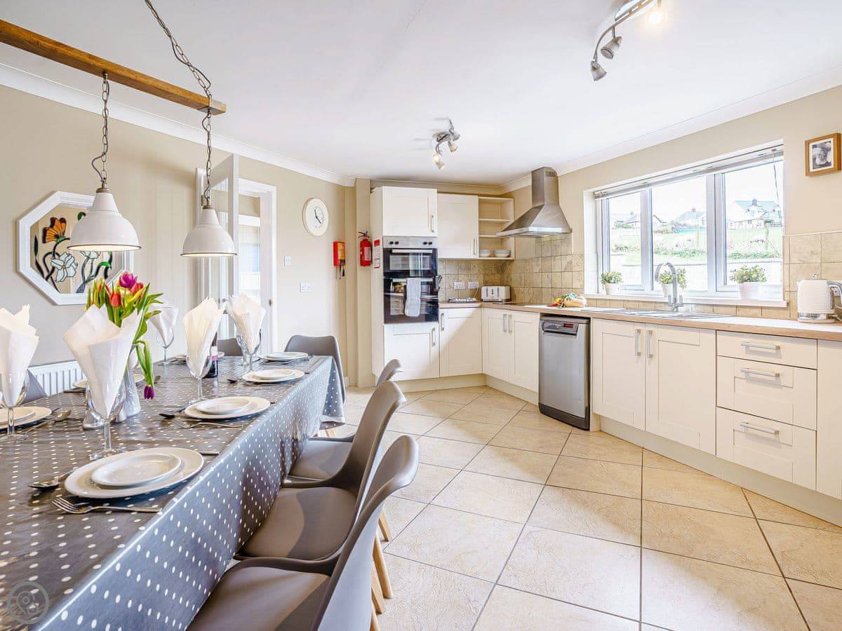 Hafdir is a bungalow in Gwbert, right on the coast near Cardigan. It sleeps ten, has five bedrooms and three bathrooms. It's rated 5 Star, which basically means it's modern, everything works, and it's well looked after. Because it's all on one level, it's good for people who don't like stairs.