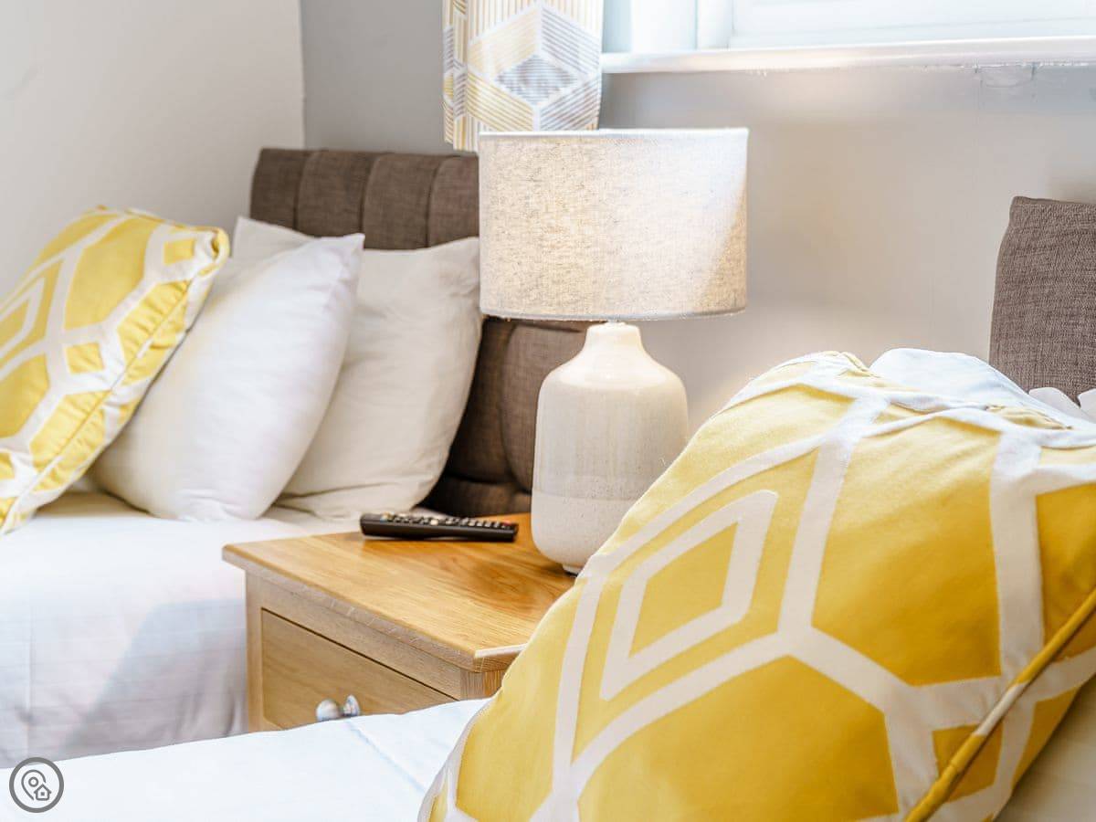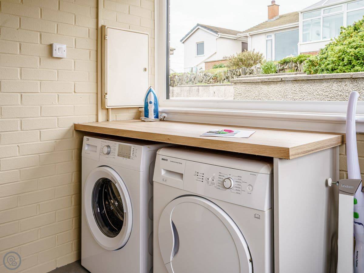 Inside, it's set up for a group. There's a dishwasher and a washing machine, and the WiFi is included. Bedding and towels are provided. You can bring up to two dogs. The outside areas have CCTV.